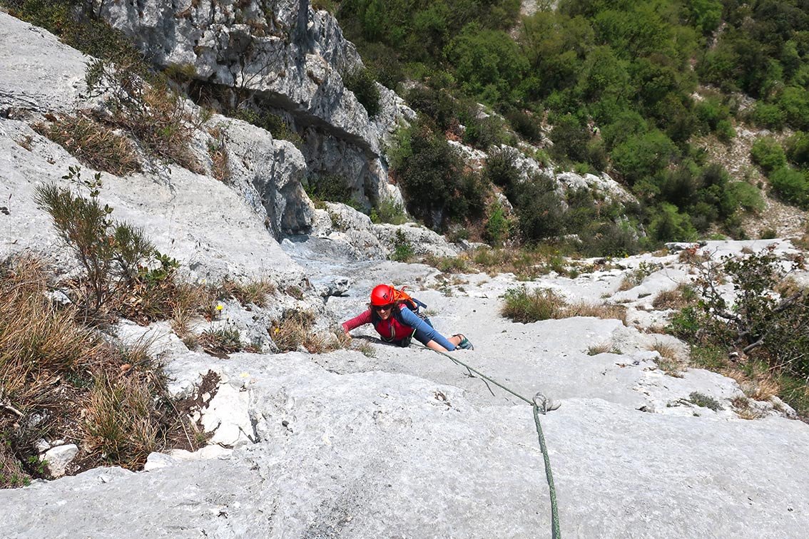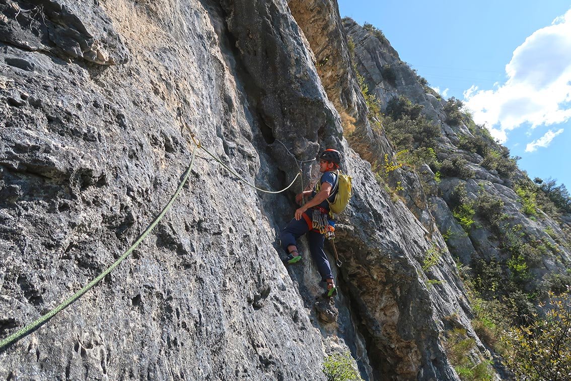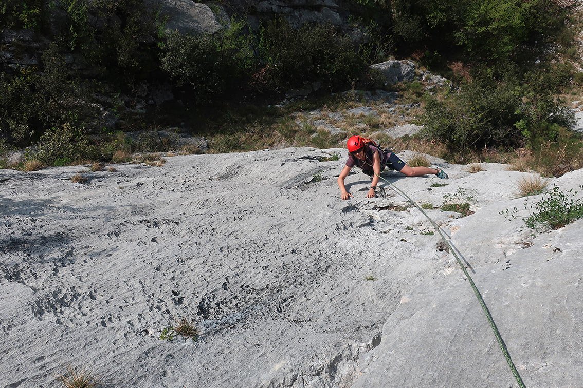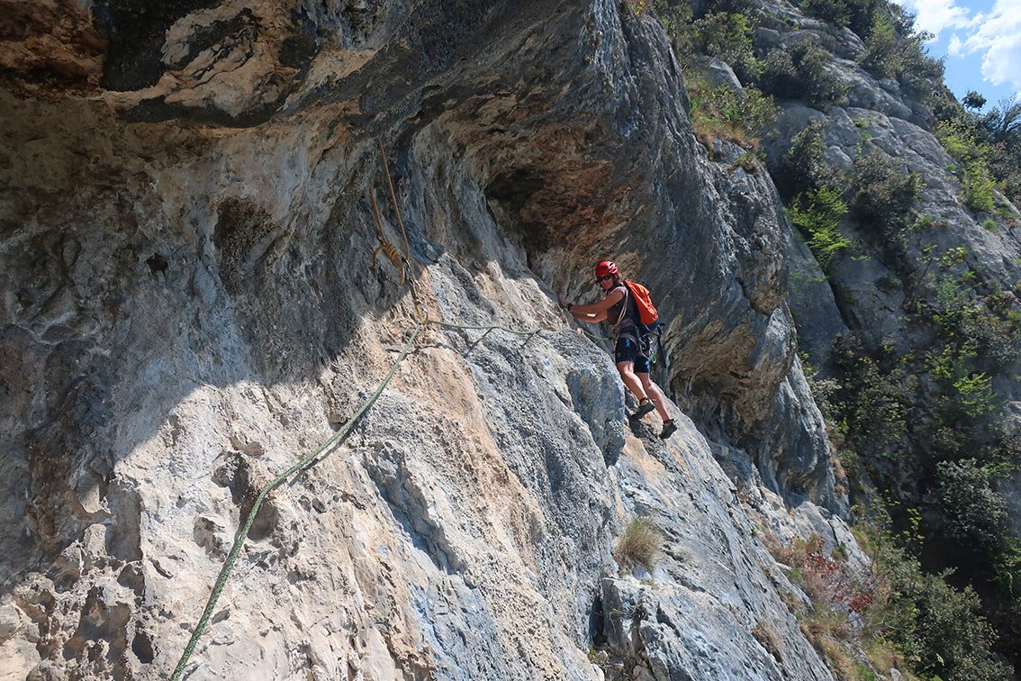 Die Sulle Pance del Pezol ist wegen der vielen Quergänge eine der längsten Anstiege an der Parete di Pezol. Geschickt haben sich die Erstbegeher die schönsten Felspassagen herausgesucht und diese mit teilweise langen, aber nicht sehr anspruchsvollen Querungen verbunden. Die zwei schweren Passagen sind sehr gut abgesichert und können auch gut mit Hakenhilfe überwunden werden. Einzig kleiner Schönheitsfehler sind die recht üppig gebohrten Griffe an den beiden Schlüsselstellen - Ethikapostel schreien laut auf, andere sind erfreut über die mit der Bohrmaschine geschaffene 7er-Stellen. Wie auch bei den anderen Pezol und Ir Touren ist das landschaftliche Flair und der tolle Gardaseeblick bei der Sulle Pance del Pezol natürlich auch inkludiert.