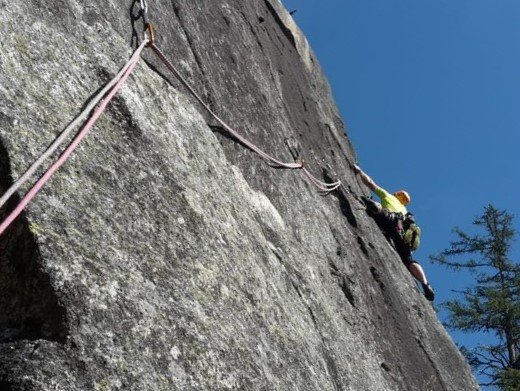 Supersommer ist eine Klettertour, die alles bietet, was ein Granit-Kletterer können muss, aber in abgeschwächter und sehr gut aufbereiteter Form. Platten, Stufen, Kanten, Verschneidungen (darunter auch eine fi ese), kleine Überhänge und Faustrisse müssen bewältigt werden und alles ist mit Bohrhaken sehr gut abgesichert. Ganz nebenbei hat man eine fantastische Aussicht auf die immer kleiner werdende Gletscherwelt der 3000er des Zillertals.