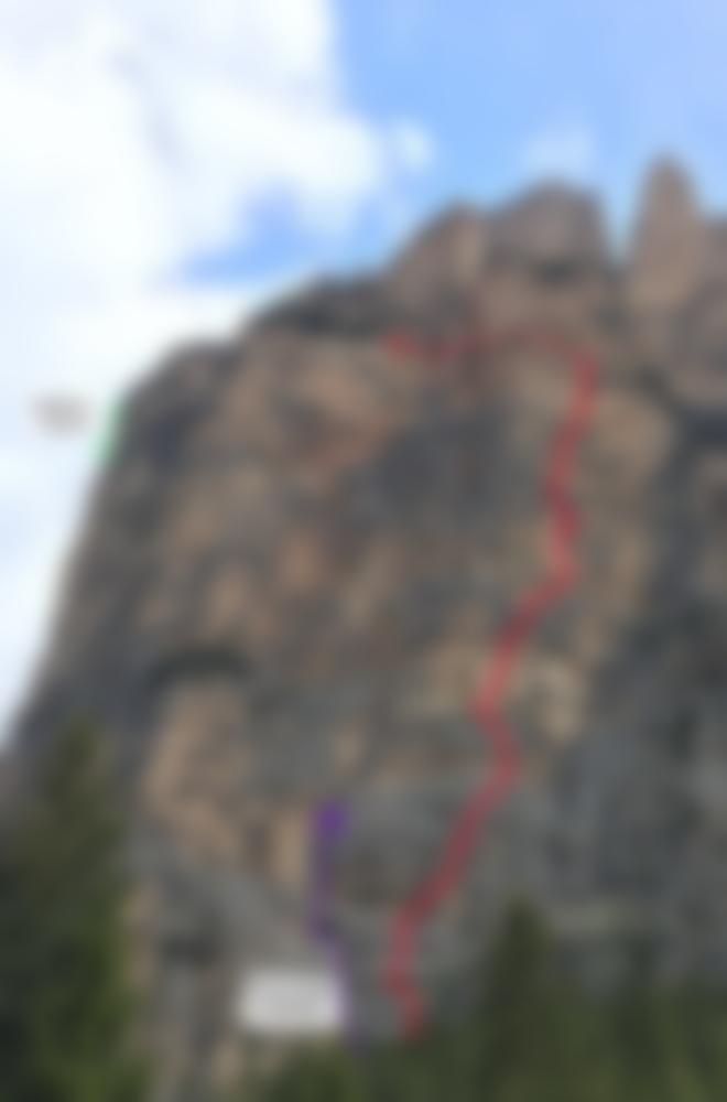 Vom Parkplatz aus überquert man die Wiese und steigt zu Wand auf. Der Einstieg ist rechts des markanten Kamins rechts der markanten gelben Wand. Siehe Topo!