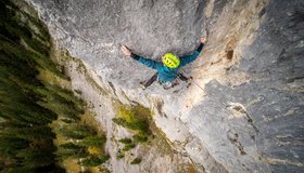 8 Expressschlingen, davon 2 verlängerbare, Helm, eine extra 120er Schlinge für den Ausstieg