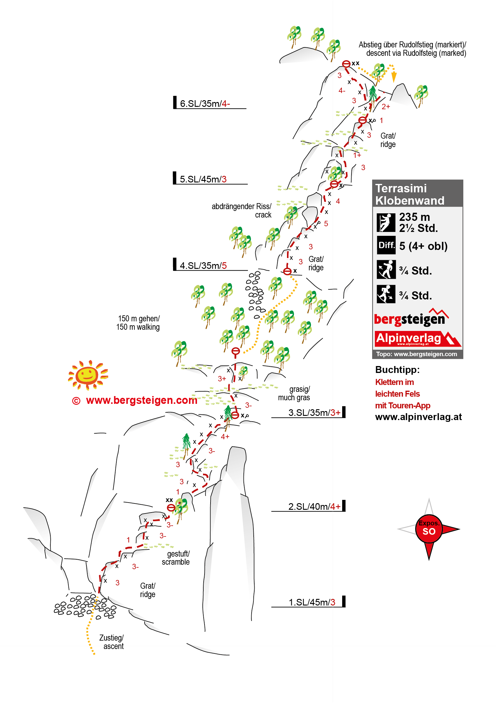 Eine Wiederbelebung des Terrassensteigs oder die Rax im Urzustand, aber recht gut mit Bolts gesichert. Wer das mal erleben möchte, dem sei diese Route empfohlen. Wenig geputzt, relativ fester Fels, ein Gehstück in der Mitte. Genau diese Zutaten machen eine wirklich klassische Raxroute aus.