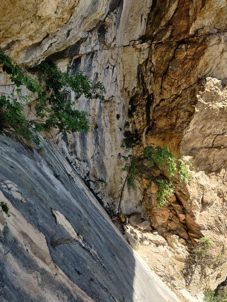 Alternativ kann man sich die erste nicht wirklich lohnende SL sparen und direkt in der 3. SL starten. Man kann dorthin sehr gut vom Klettersteig rüber queren.
