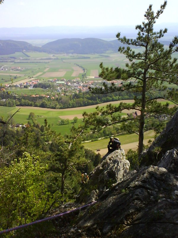 Dieser nette Gratanstieg zählt zu den beliebtesten Hohe Wand Routen. Die Route hat geringe Schwierigkeiten (3) und ist mit Bohrhaken abgesichert. Der Fels weist einige interessante und teils etwas ausgesetzte Kletterpassagen auf. Es gibt auch eine direkte Variante an der Kante, die mit 5- zu bewerten ist.