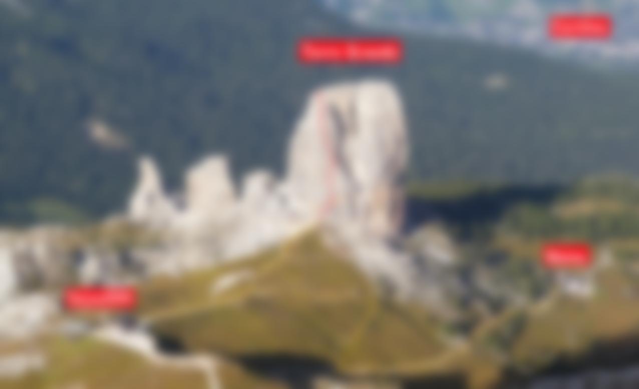 Eine der beliebtesten Touren im Gebiet der Cinque Torri ist der Anstieg an der Westseite des Torre Grande. Die Tour ist in der ersten Seillänge an einem Überhang kurz schwer (geht auch technisch), der Rest ist schöne Genusskletterei. Die Via della Guide ist nicht nur bei Bergführeren beliebt, in der Regel ist man nicht der einzige in dieser guten Route - wenn zu viel los ist, hat man aber an den Cinque Torri zum Glück genug Auswahl.