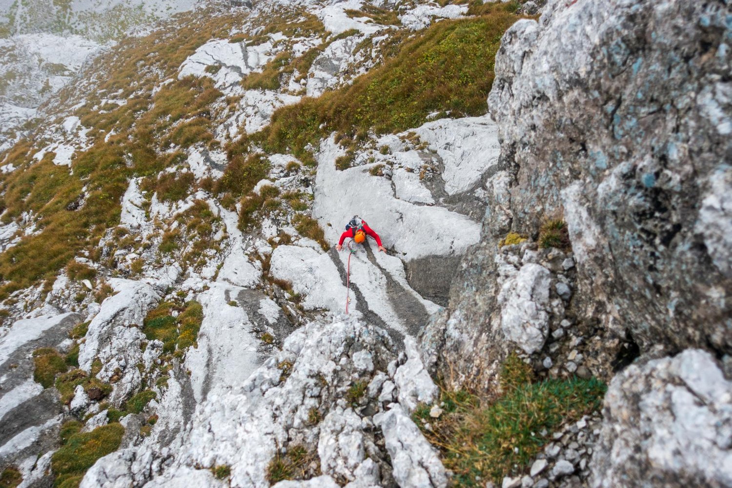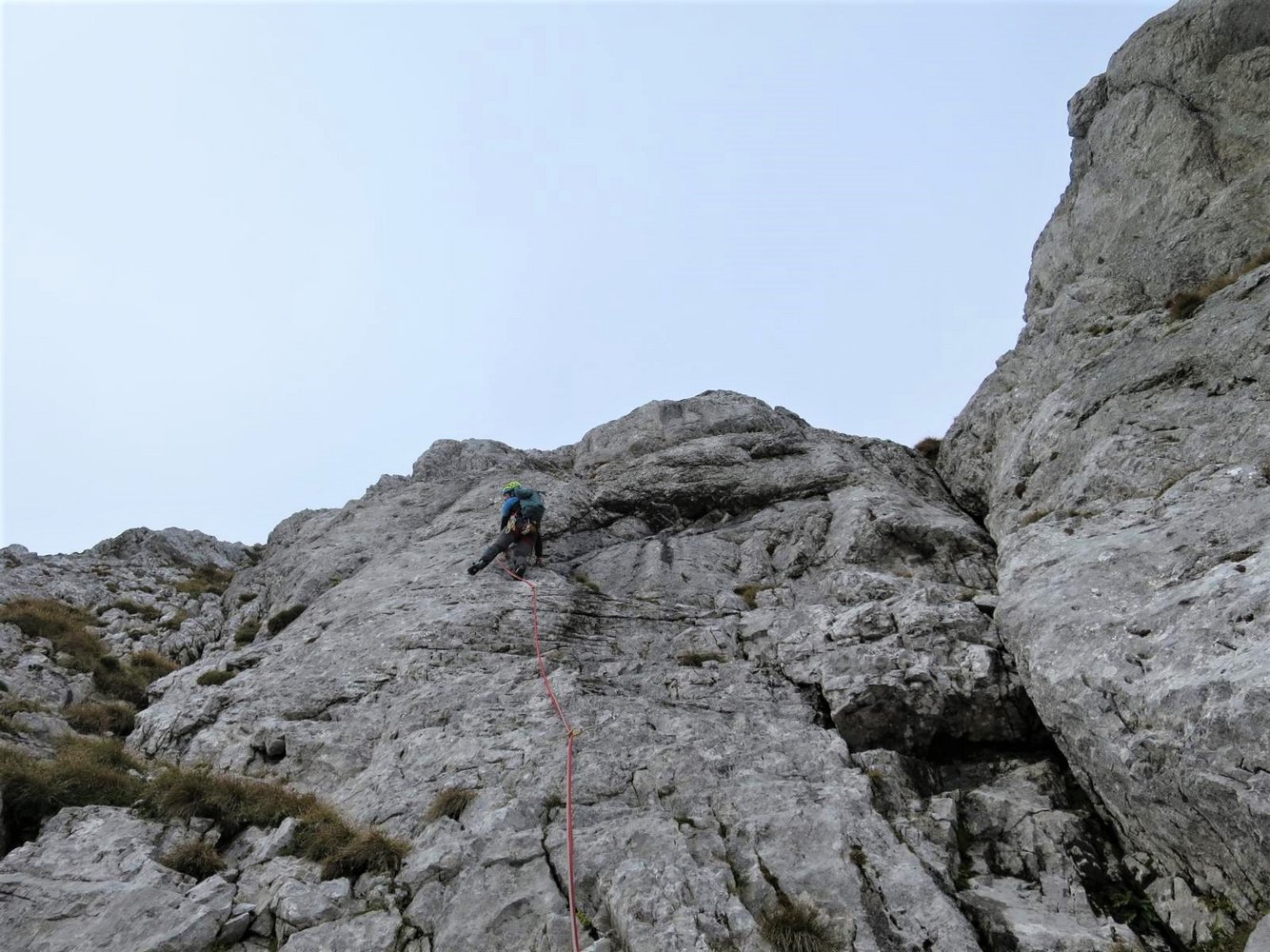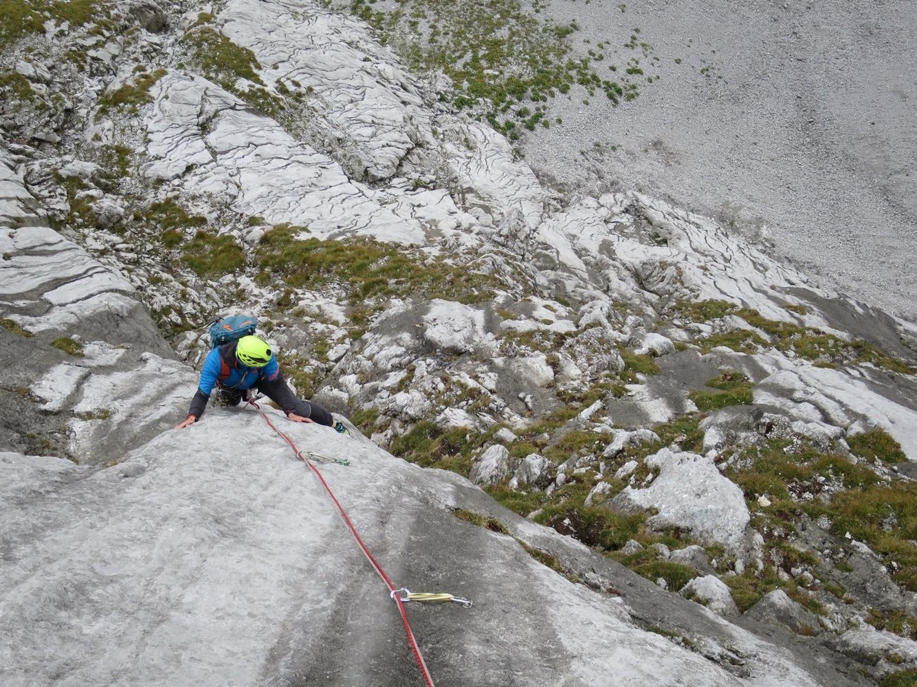 Neue Plaisirroute an der Hochschwab Südwand. Die Route kann hinsichtlich Felsqualität nicht mit den Routen im rechten Wandteil mithalten. Sie ist dafür aber perfekt mit vielen Bohrhaken gesichert. Die Kletterei ist etwas inhomogen und bietet in Wandmitte auch eine schöne Wiesenlänge. Die Stände sind zum Abseilen eingerichtet.