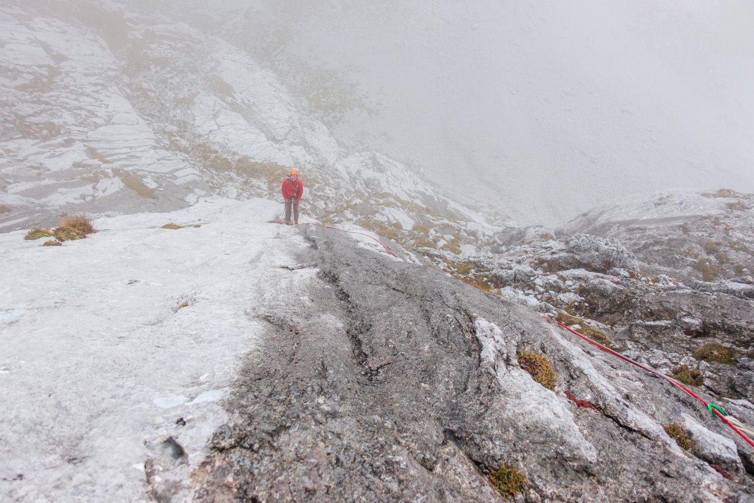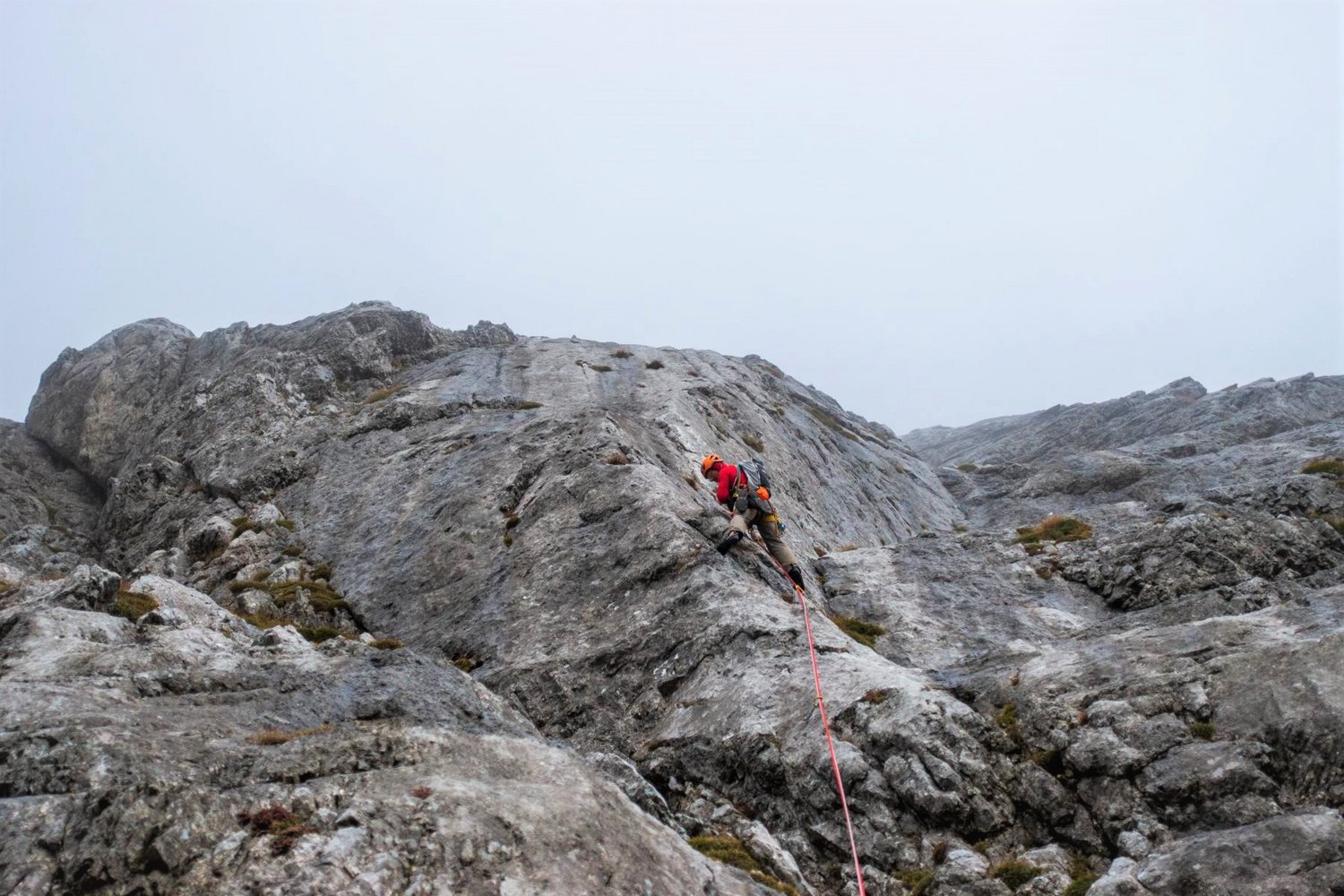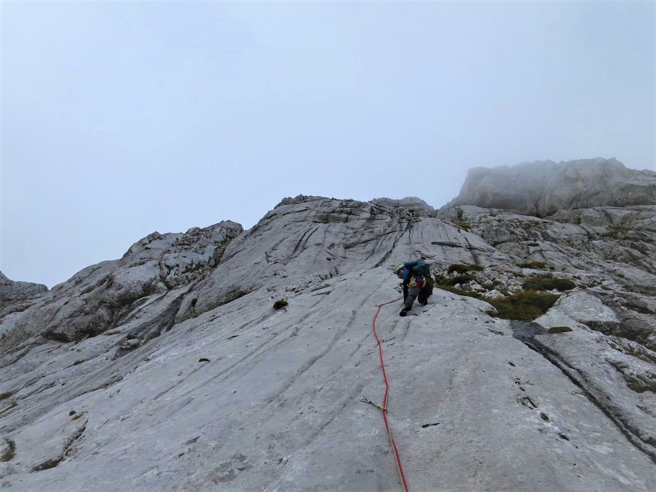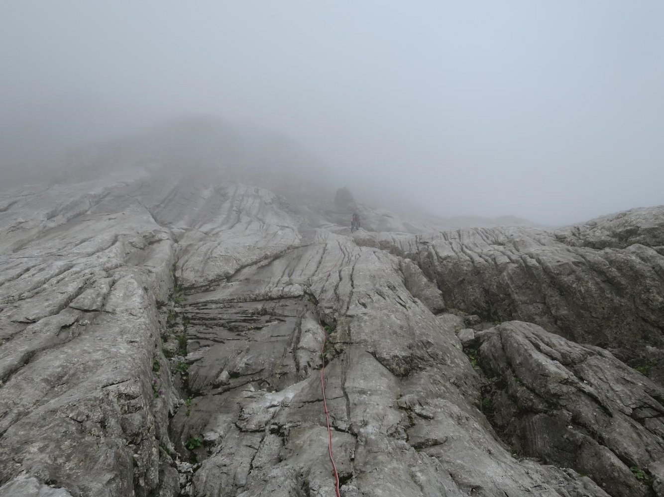 Neue Plaisirroute an der Hochschwab Südwand. Die Route kann hinsichtlich Felsqualität nicht mit den Routen im rechten Wandteil mithalten. Sie ist dafür aber perfekt mit vielen Bohrhaken gesichert. Die Kletterei ist etwas inhomogen und bietet in Wandmitte auch eine schöne Wiesenlänge. Die Stände sind zum Abseilen eingerichtet.