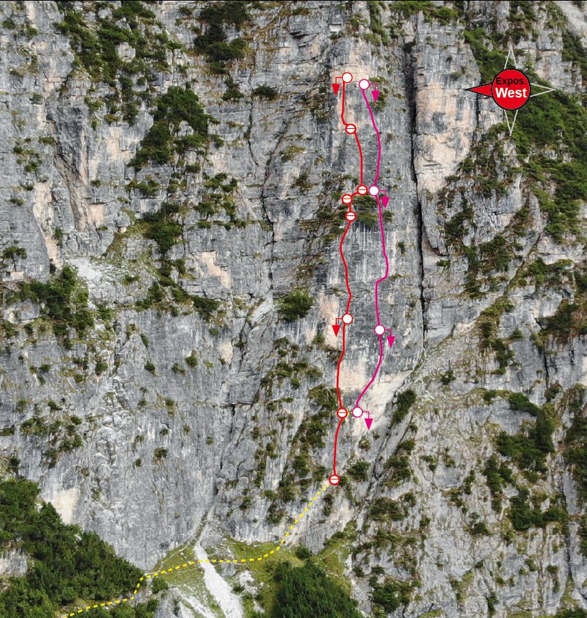 Abseilen über die Route - siehe auch Topo, man verwendet teilweise die Standplätze der Route „Made in Tirol“.