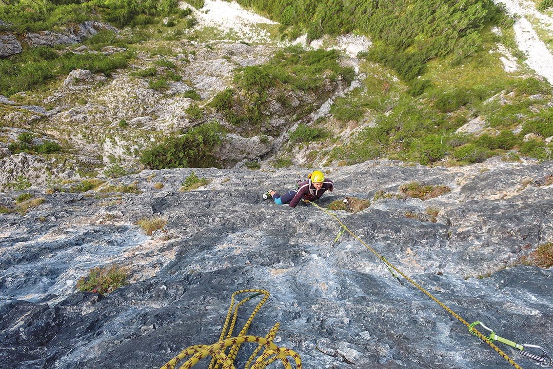 60 m Doppel- oder Einfachseil, 16 Expressschlingen und Helm.