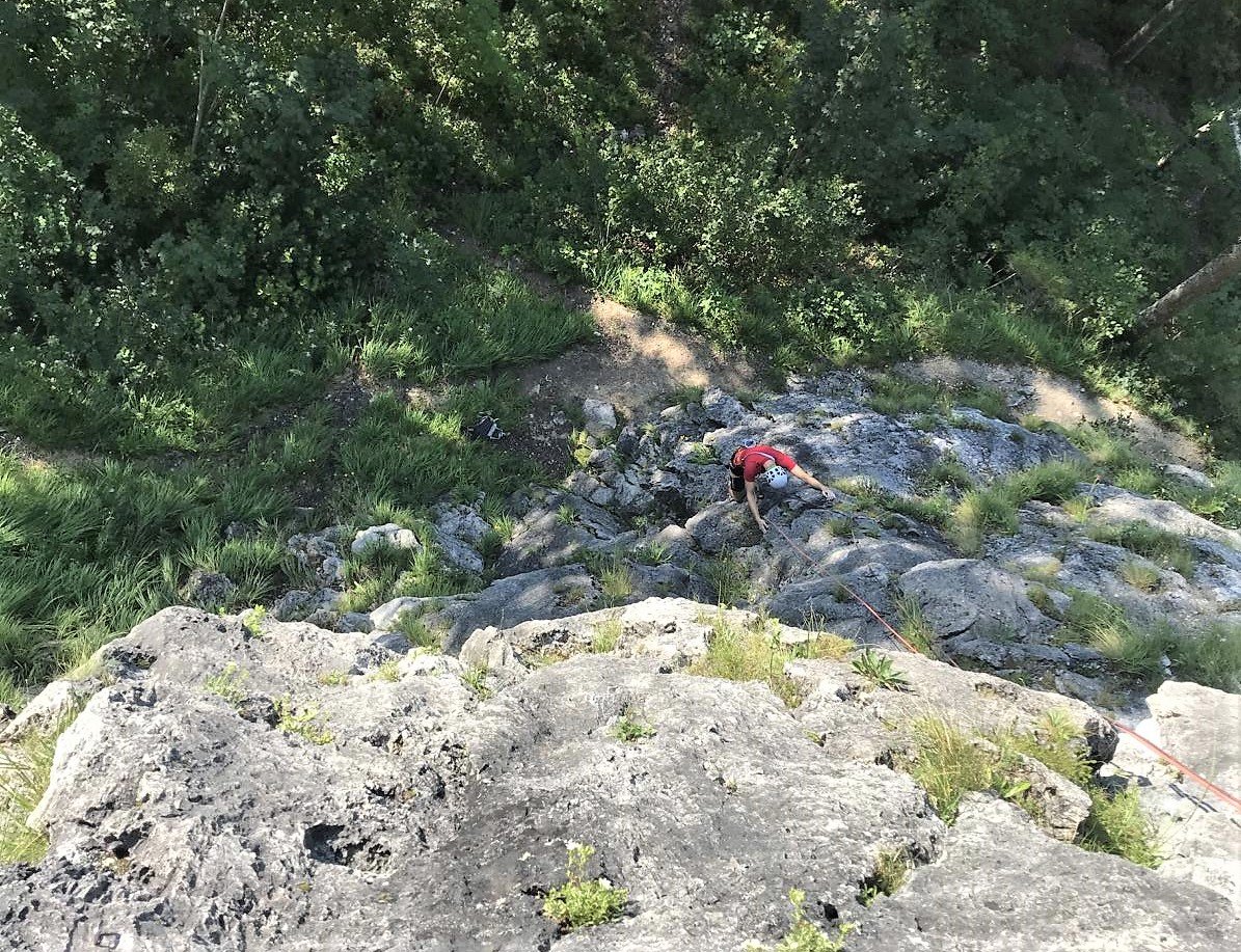 Über die Route absteilen, siehe Topo!