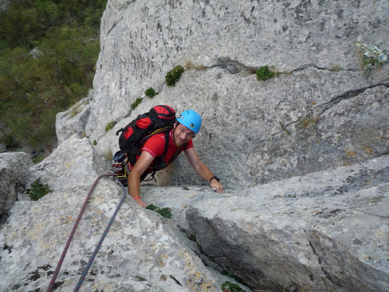Großartige, sehr beliebte und auch bereits etwas abgekletterte Linie die zur Anića kuk – Trilogie (Velebitaški – Klin – Mosoraški) zählt. Die Route bietet sehr abwechslungsreiche Klettertei an Rissen und Platten im zentralen Teil der Nordwand. Sicher eine der beliebeste Mehrseillängen Routen im Velebit / Paklenica.