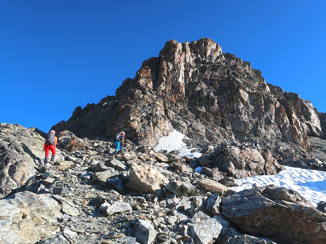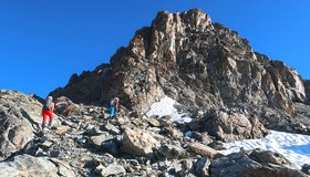 Die Verpeilspitze thront mit 3423 m hoch über der Kaunergrathütte. Der gletscherfreie Anstieg auf die Verpeilspitze erfordert Kletterei im oberen zweiten Schwierigkeitsgrad durch stellenweise brüchiges Gestein. Dafür wird man am Gipfel mit tollen Ausblicken auf die Watzespitze und die anderen Gipfel des Kaunergrats belohnt. An klaren Tagen reicht der Blick von Dolomiten im Süden bis zu der Bernina im Westen.