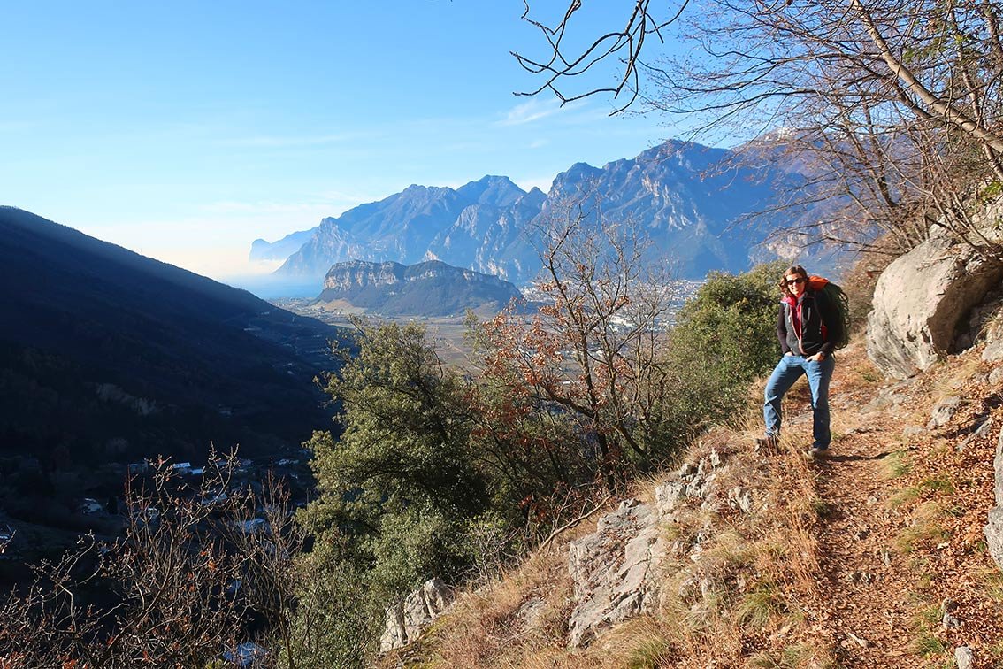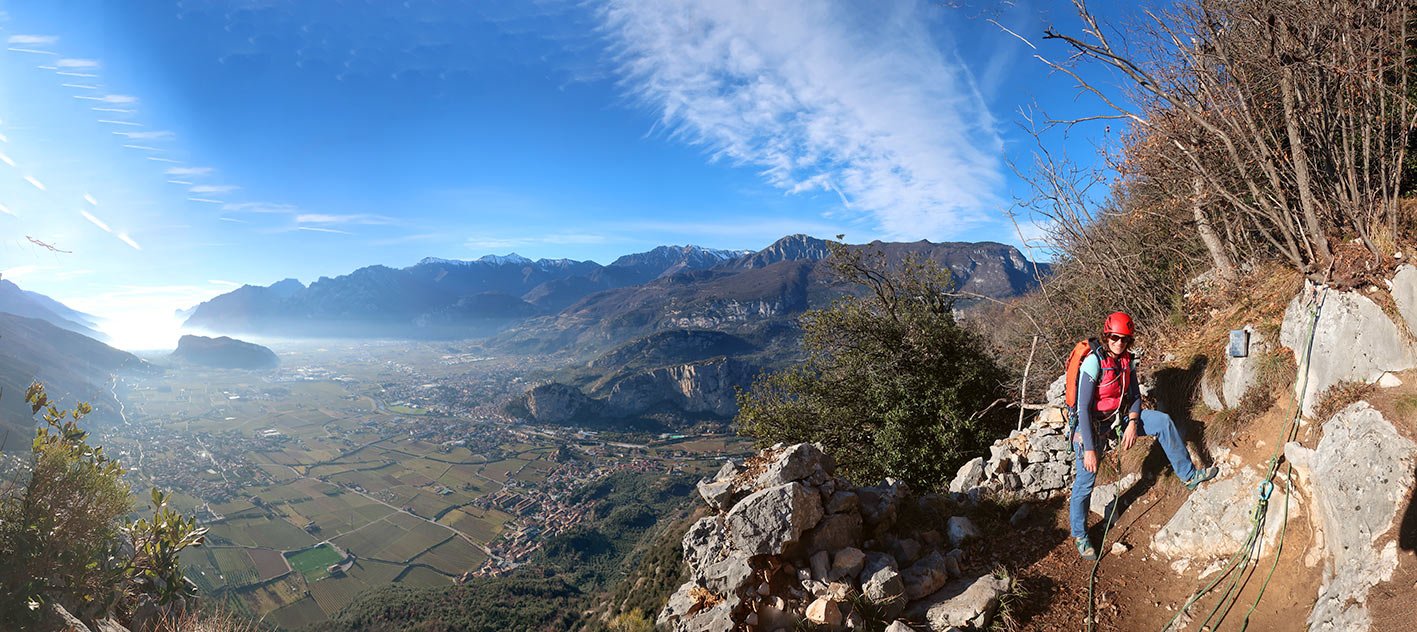 Die Touren an der Parete di Pezol sind eine Klasse für sich - die Via Cercando la trincea ist eine der lohnendsten, leichten Touren an dieser tollen Felswand. Die Kletterei ist meist griffig und steil und bis auf wenige Passagen gut mit vielen Sanduhren und Normalhaken gesichert. An zwei schwierigen (!) Passagen sollte man mobile Sicherungsmittel (Friends) einsetzen, dieses sind im Topo vermerkt. Die Wand ist ab dem späten Vormittag bis zum Sonnenuntergang in der Sonne, deshalb ist diese Kletterei vor allem in der kalten Jahreszeit - wir waren am 1. Jänner dort - beliebt und der Blick auf den Gardasee ist mehr als perfekt!