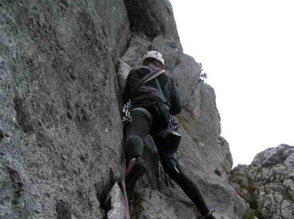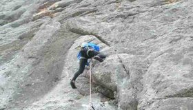 - Beim 3. Mal abseilen zum 4. Abseilstand muß stark rechts angependelt werden – evtl. Expresschlinge einhängen.