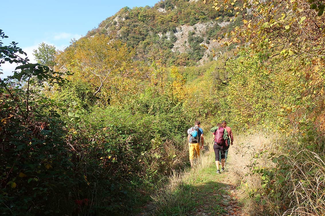 In Bolognano folgt man der Straße SP48 in Richtung Monte Velo bis zu einer Kehre auf ca. 460 m. Dort am Straßenrand parken. Es gibt zwei Kehren mit Schranken, es ist die obere Kehre, hinter der Schranke beginnt ein Wanderweg.