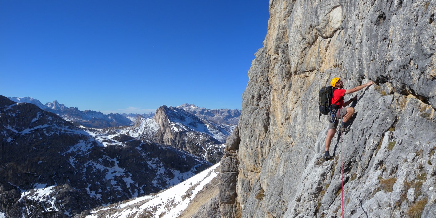 Einige Seillängen 4, aber auch leichtere Seillängen.