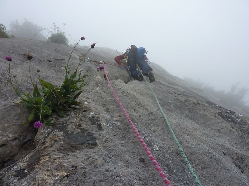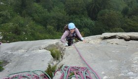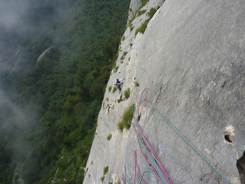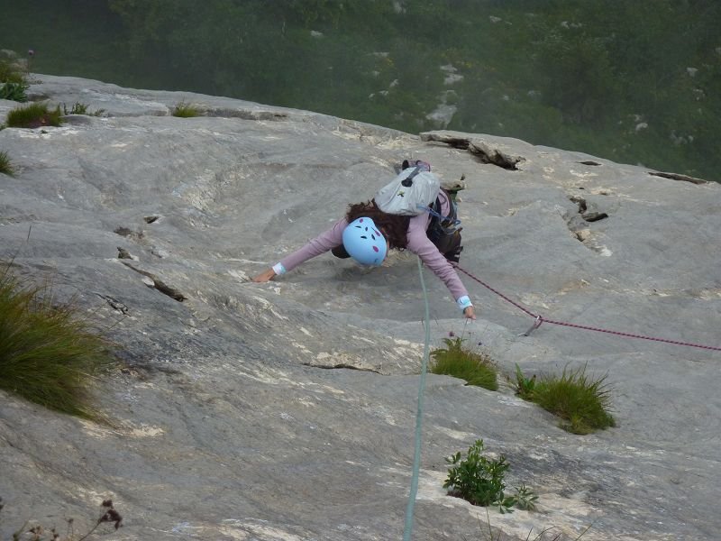 Der erste Teil der Tour braucht etwas länger zum Abtrocknen als die anderen Touren am Panettone. Es kann auch mit einem Einfachseil (80m!) geklettert werden, allerdings müssen dann die Abseilstände genau getroffen werden.
