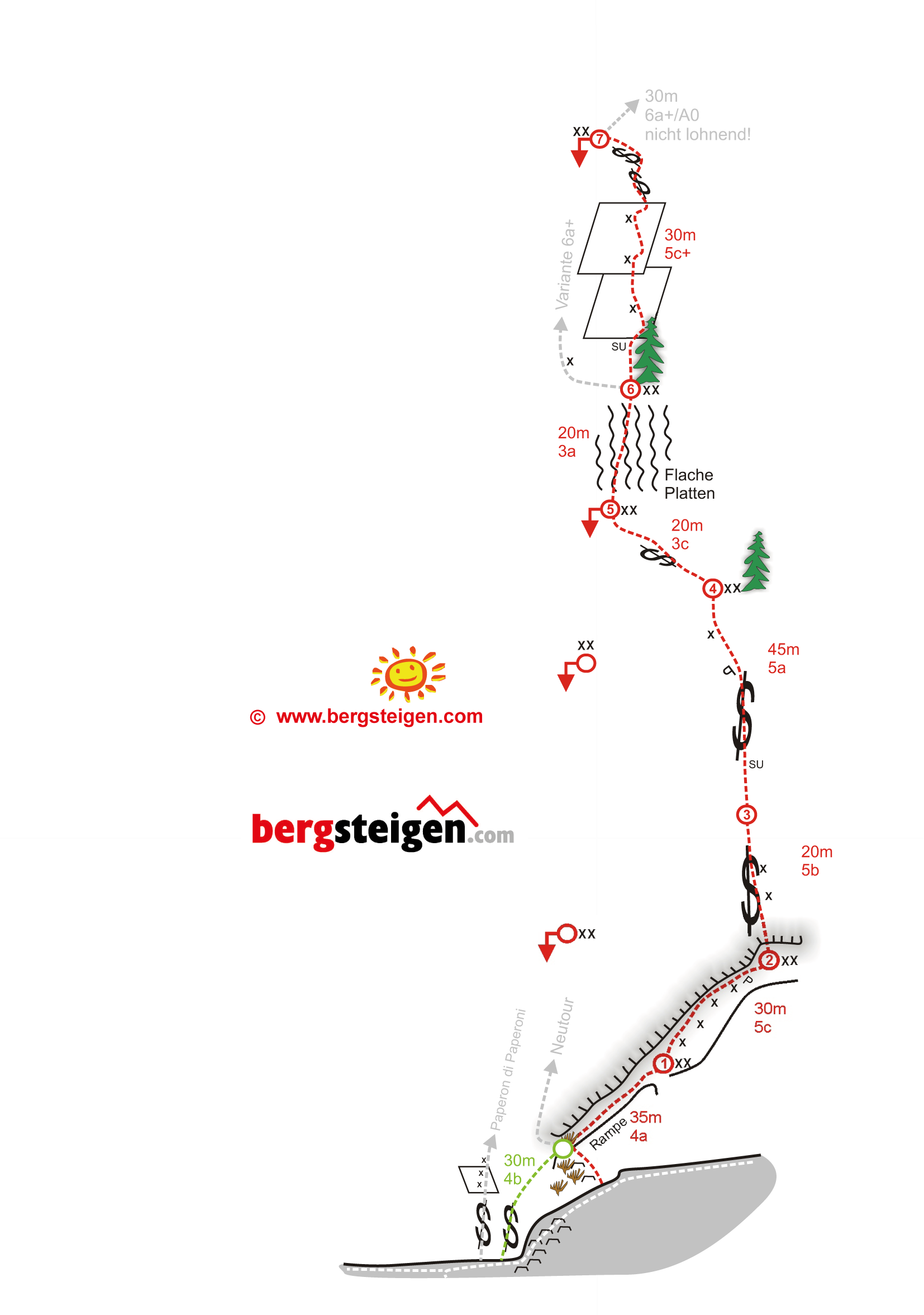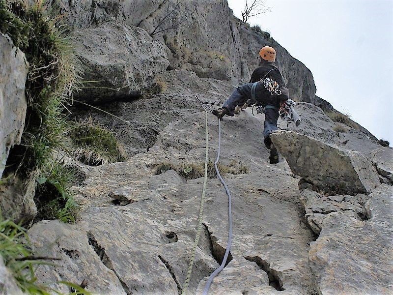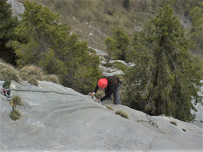 Die Tour trocknet wie viele Touren am Panettone recht schnell ab. Es kann auch mit einem Einfachseil (80m!) geklettert werden, allerdings müssen dann die Abseilstände genau getroffen werden.