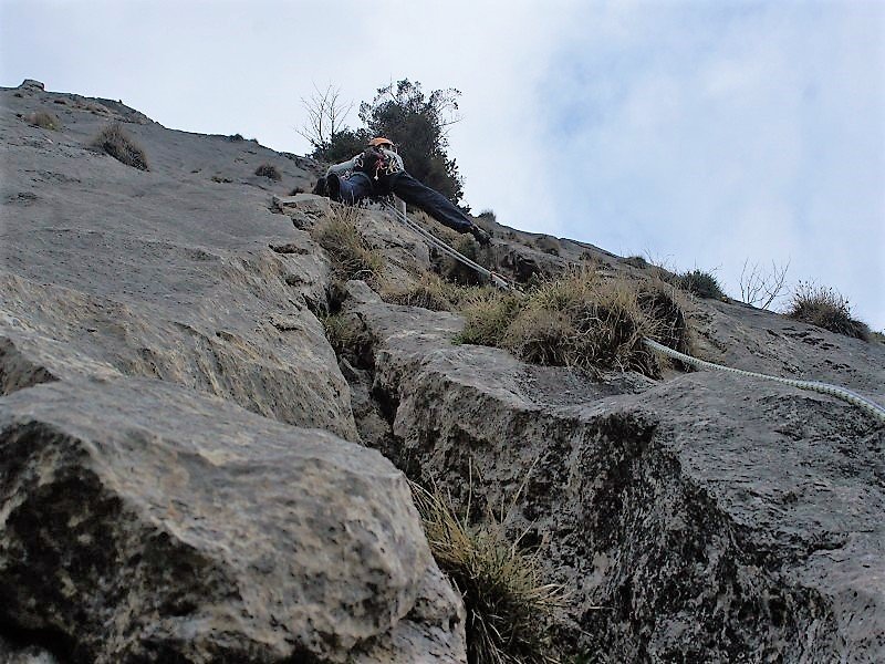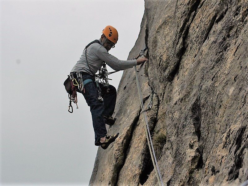Von der Absicherung her eher alpin, sind die Stände gebohrt und auch an den schwersten Stellen stecken Bohrhaken. Dazwischen ist jedoch an einiges an Platz für Cams und Keile, die jedoch gut zu legen sind.Generell hat der Panettone mit seinem kurzen Zustieg eher Mittelgebirgscharakter und ist aufgrund der südseitigen Ausrichtung und geringen Seehöhe schon früh bzw. noch spät im Jahr kletterbar.