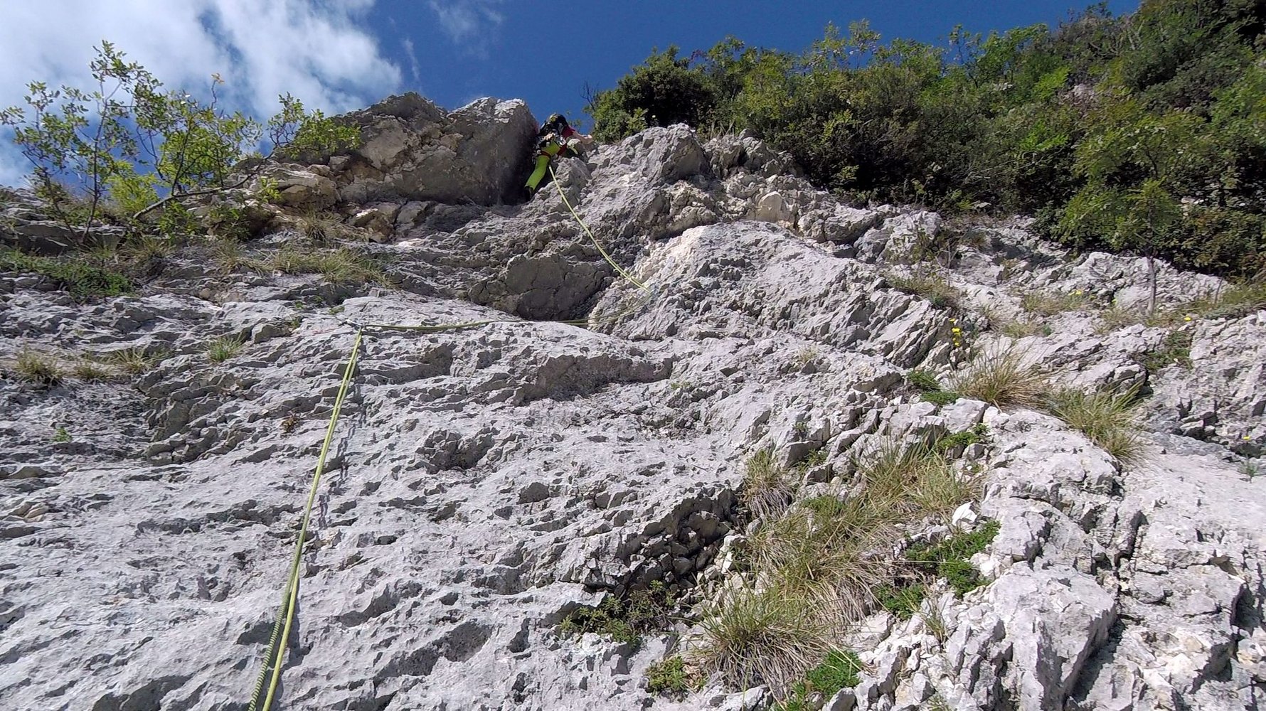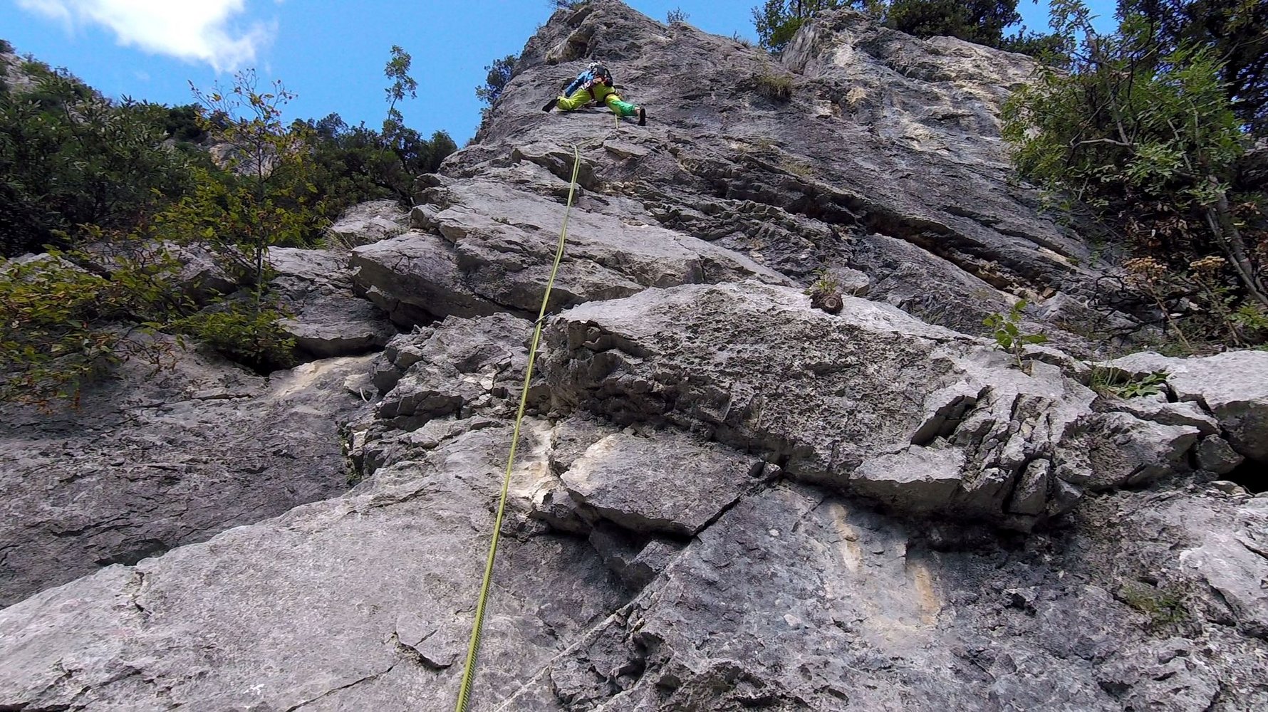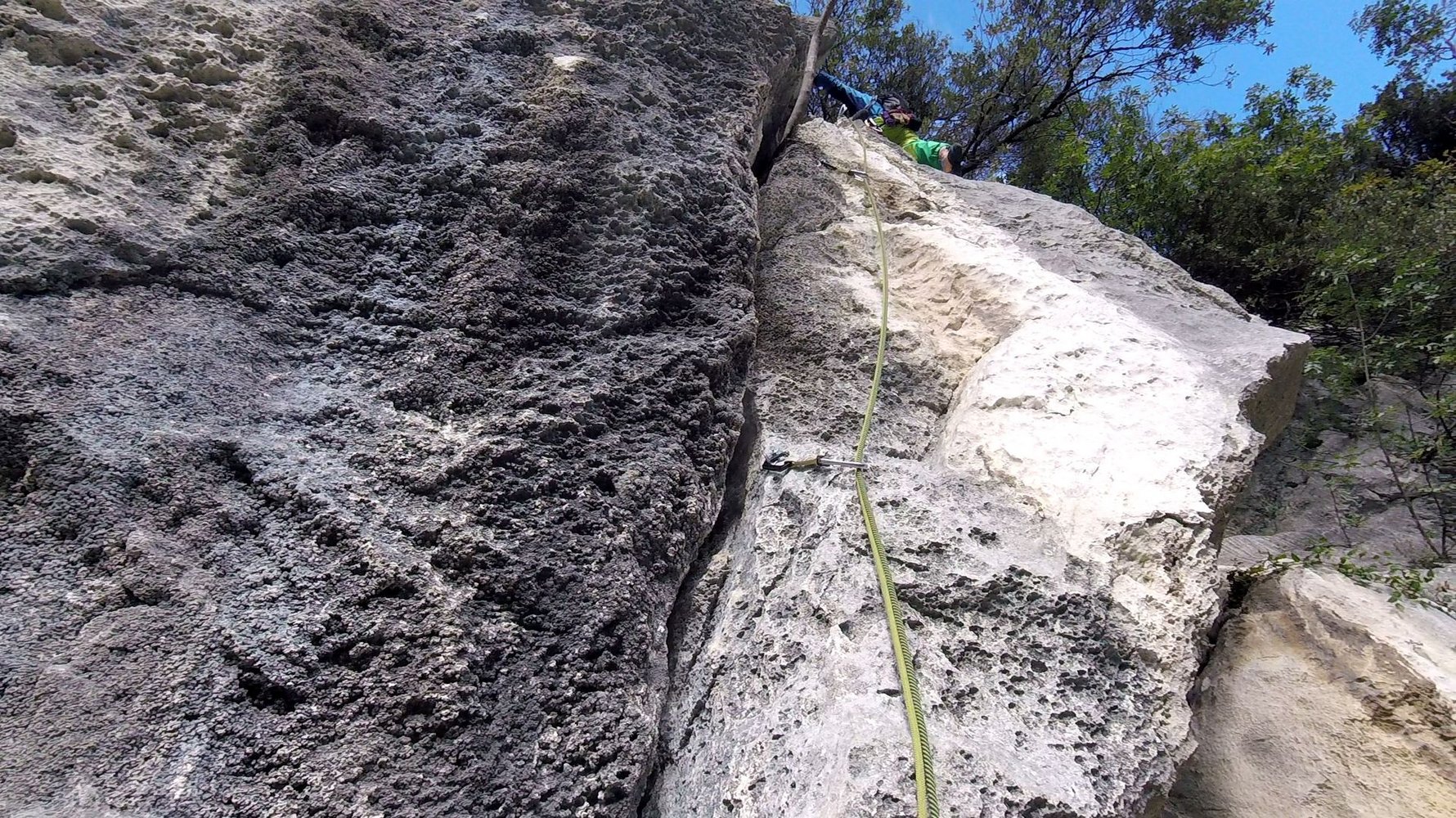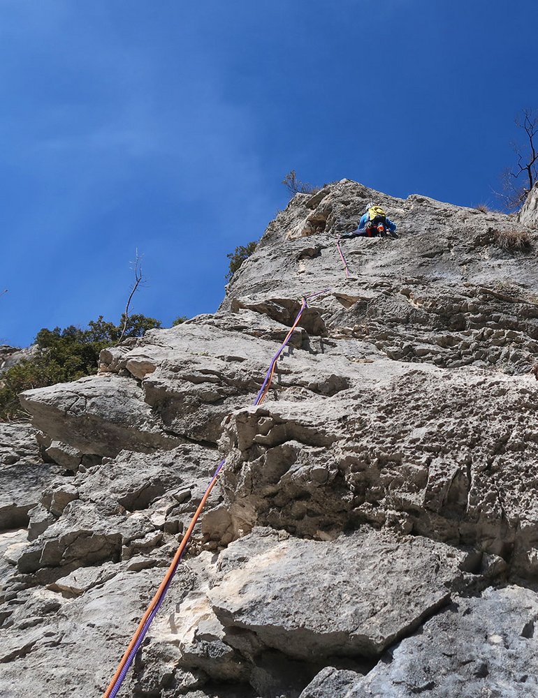 Trotz der guten Absicherung sollte der Vorsteiger im 5ten Grad sicher unterwegs sein, auch der Faustriss in der 3ten Seillänge sollte nicht unterschätzt werden.