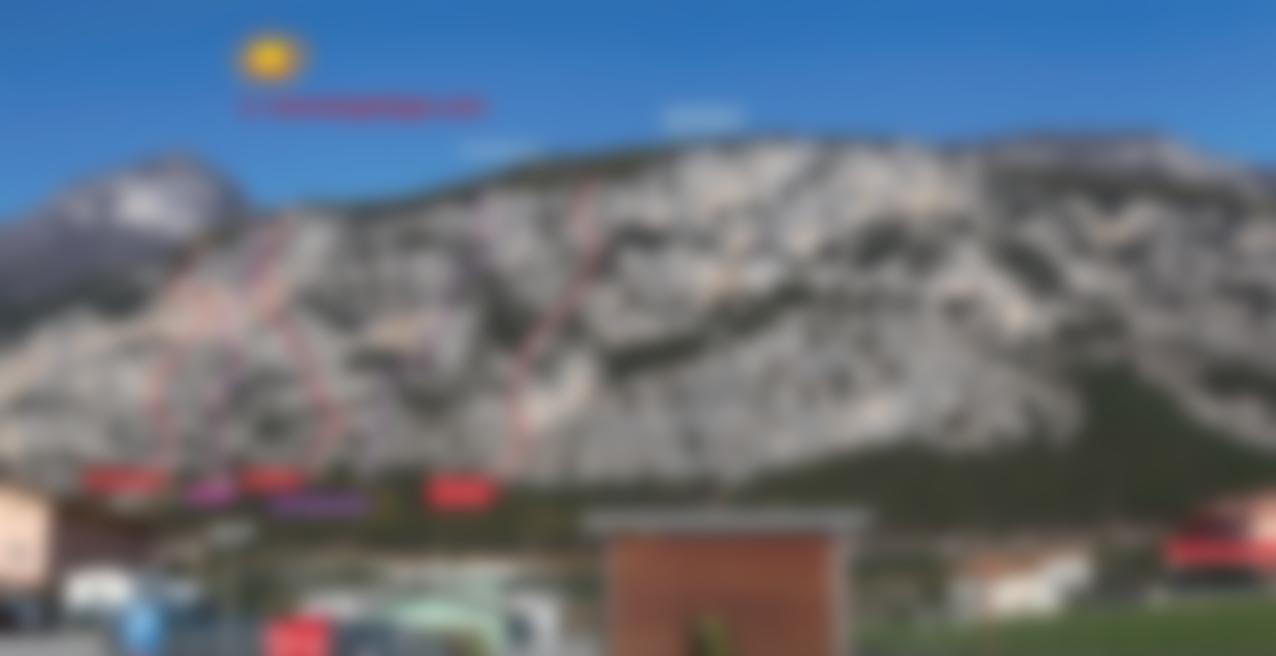 Die 7er-Stellen können 6A0 geklettert werden. In der 8. Seillänge muss man nach einem Band zu einer Schuppe recht weit oben - für kleine Personen evtl. nicht erreichbar - um einiges schwieriger ohne.
