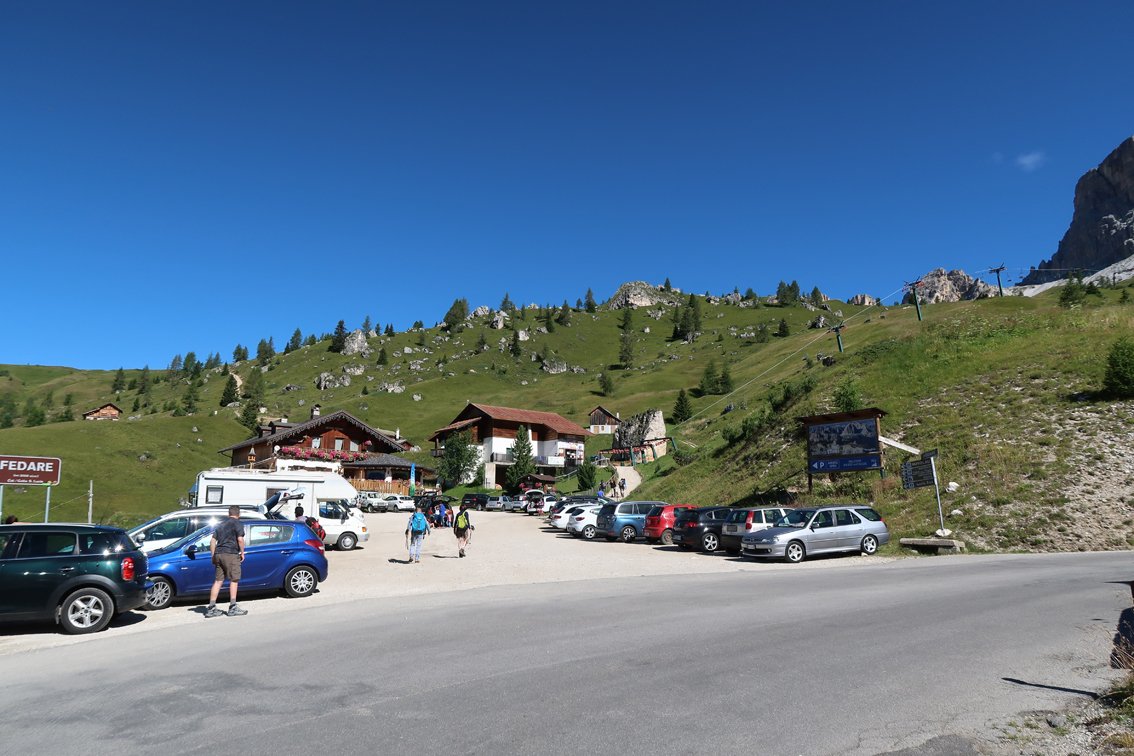 Von Norden: Über Lienz oder Brixen nach Toblach. Dort nach Süden abbiegen und auf der Staatsstraße 51 nach Cortina d’Ampezzo. Von Cortina zum Passo Giau und auf der Südseite der Passhöhe hinunter zum Rif. Fedare bei der Talstation des Sesselliftes. Von Süden: Über Vittorio-Veneto nach Cortina d’Ampezzo. Von Cortina Richtung Passo Falzàrego und bis zur Abzweigung der Straße zum Passo Giau - weiter wie oben.