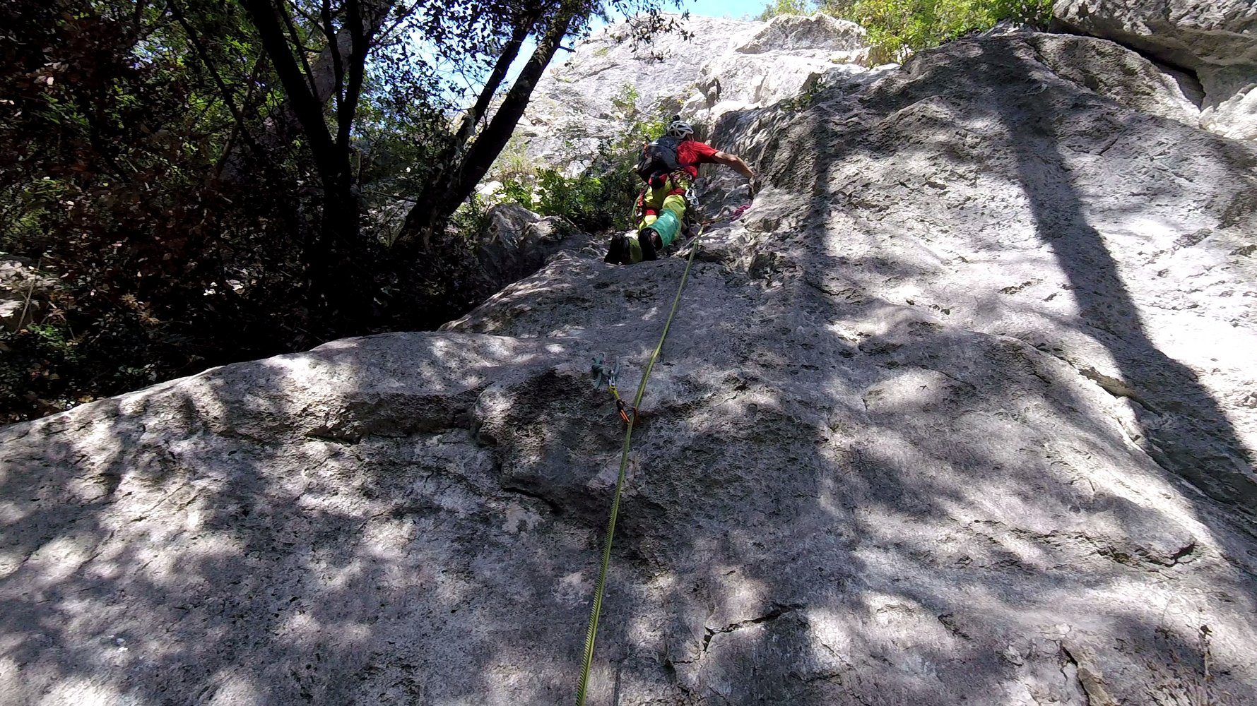 Vor allem in der vierten Seillänge sollten die vielen Blöcke auf Festigkeit geprüft werden!