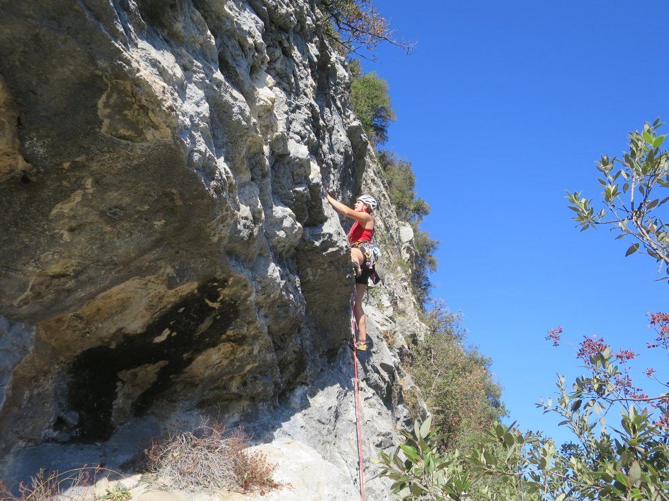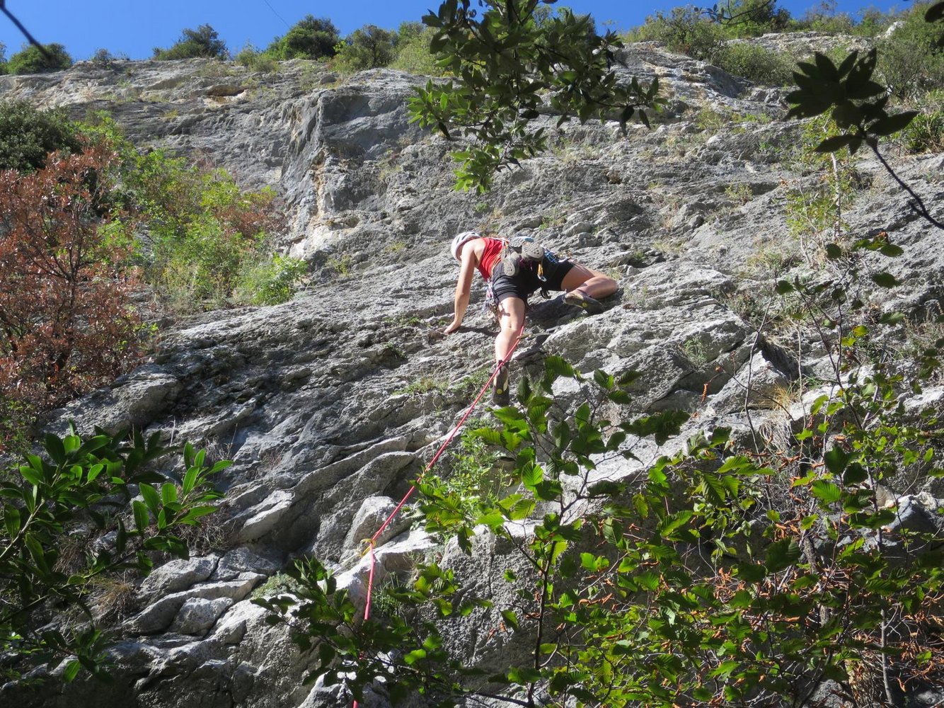 Die "Oksana" ist eine sehr lohnende Route, die im ganz linke Teil des Klettergartens La fattoria degli struzzi startet. Am Einstieg wartet ein schwerer Boulder von dem man sich nicht abschrecken lassen sollte, oben wird der Fels rauer und schöner. Die Verschneidung in der vierten Seillänge ist sensationell und es bleibt weiter schön, wobei die letzten zwei Seillängen etwas in der Qualität nachlassen.