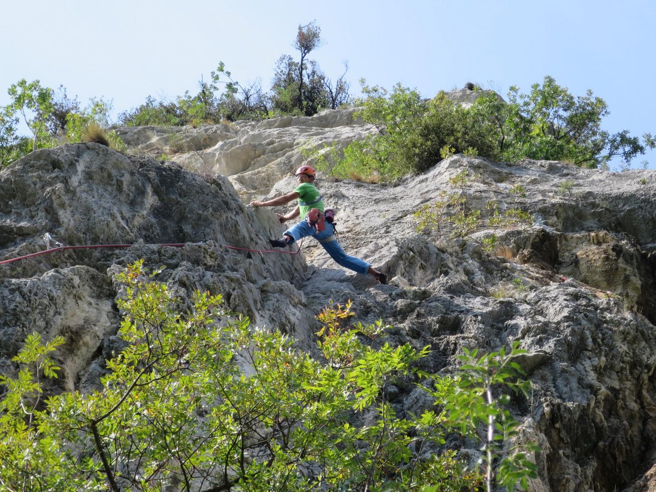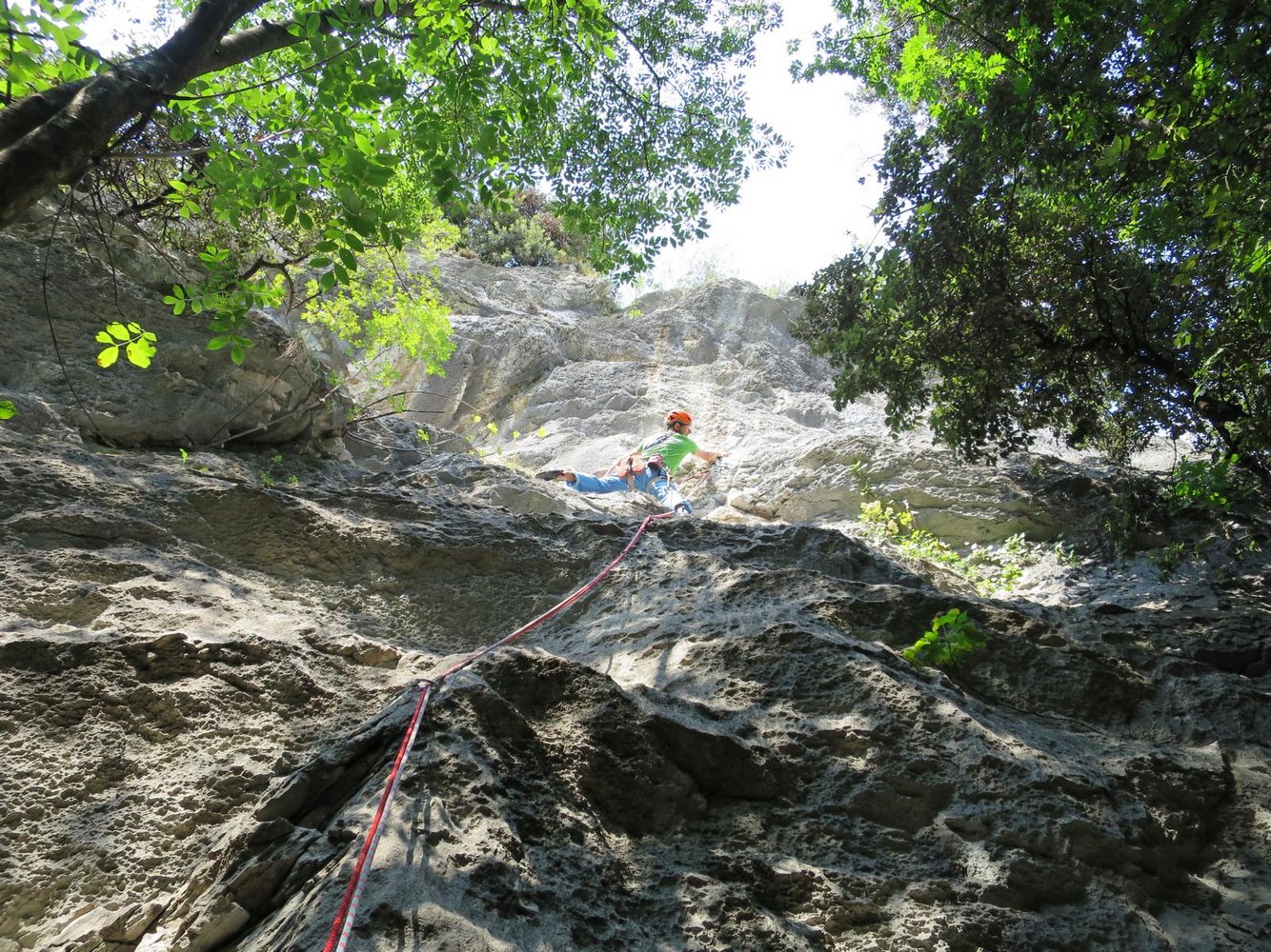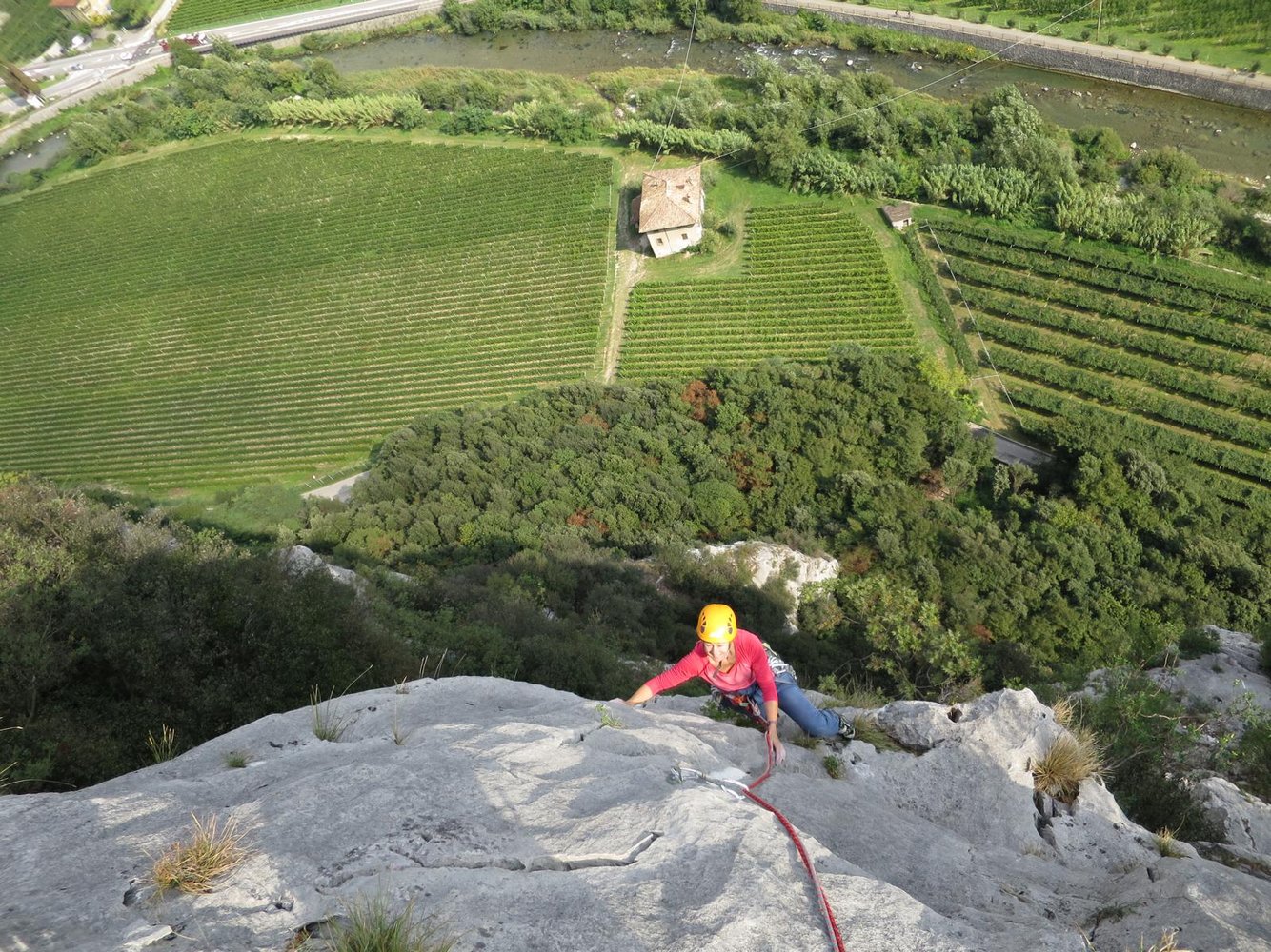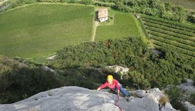 Sehr schöne und auch perfekt mit Bohrhaken abgesicherte Kletterei bei Arco. Die Via Panta Rei führt anfangs durch eine steile Wand und folgt dann in steilen Verschneidungen einem Pfeiler. Den krönenden Abschluss bildet der Pfeiler selbst! Der Fels ist immer sehr gut!