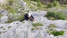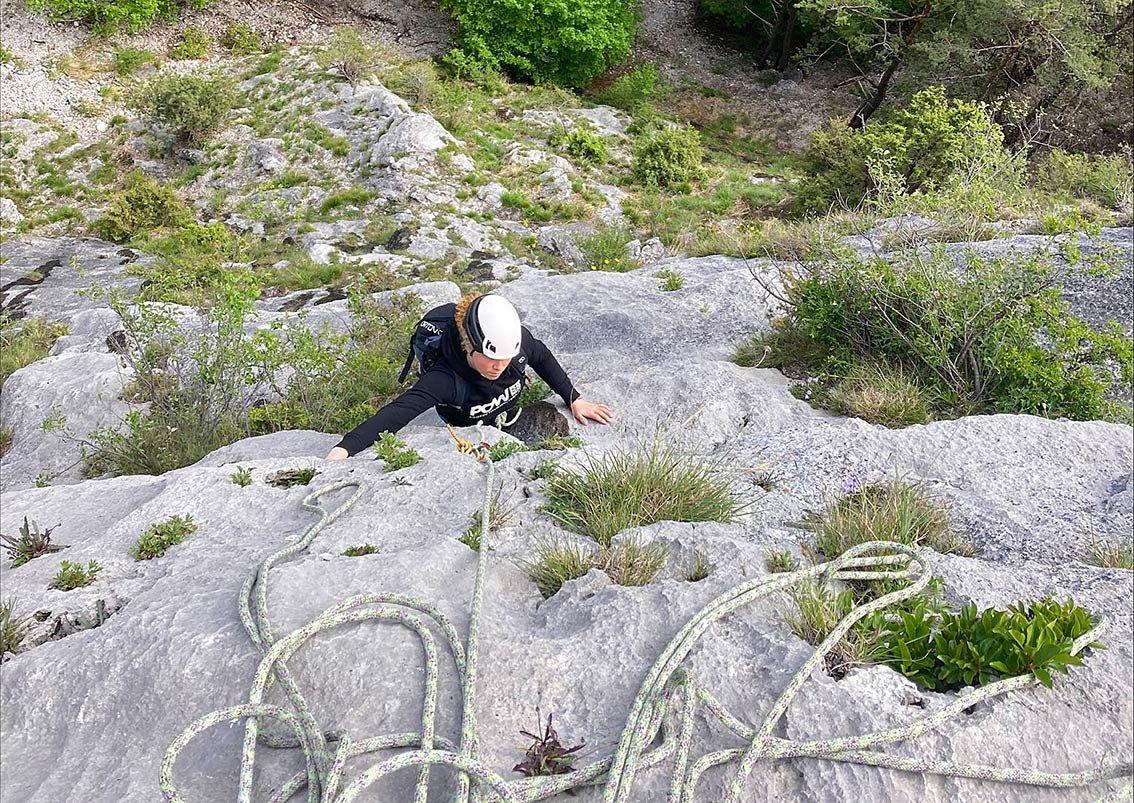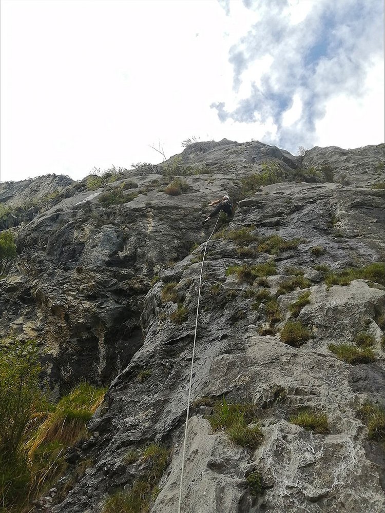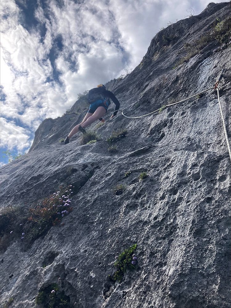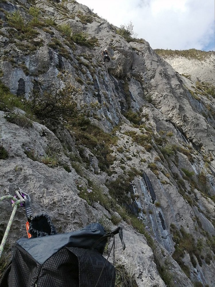 Die Route wird selten geklettert, man muss die Haken immer etwas suchen.