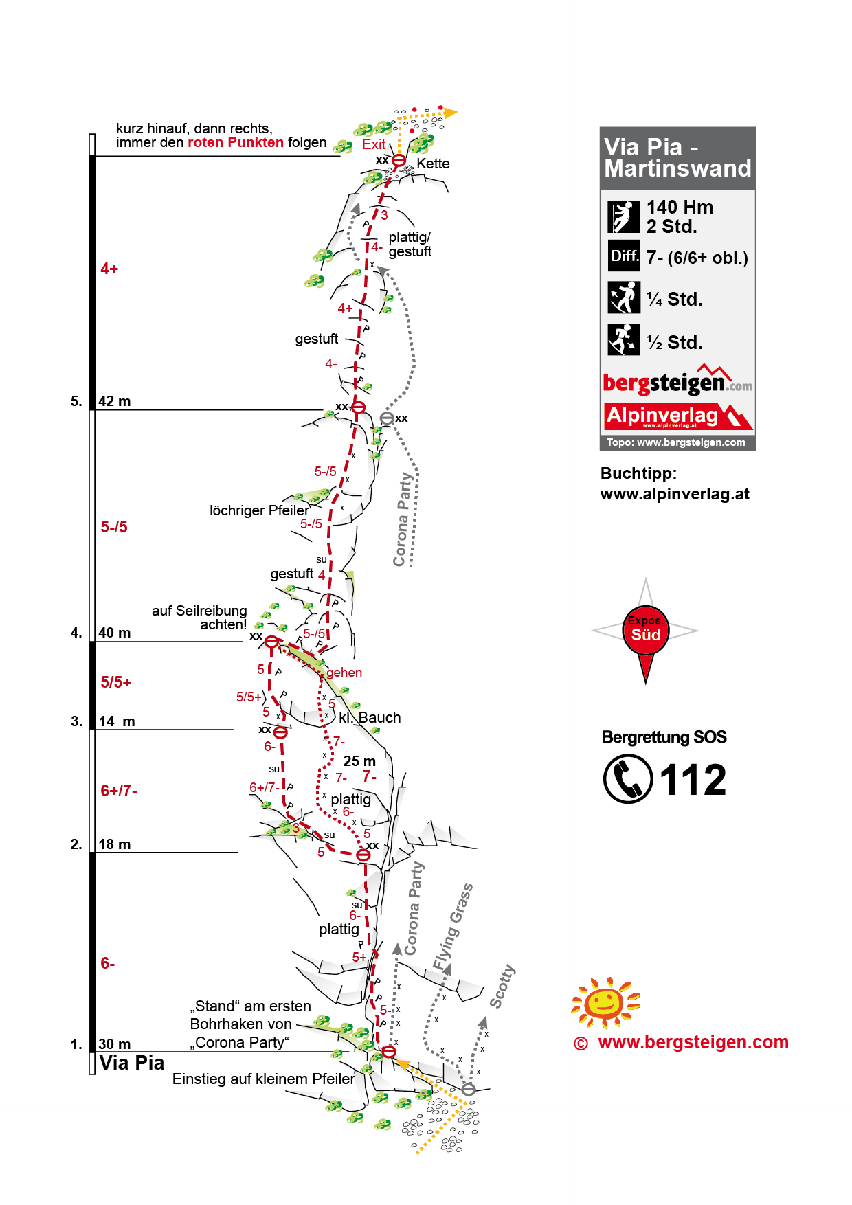 Wegen der nicht so üppigen Absicherung sollte man der Schwierigkeit gewachsen sein.