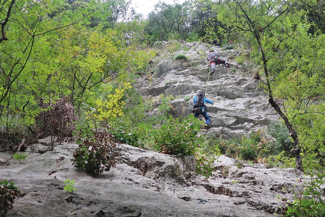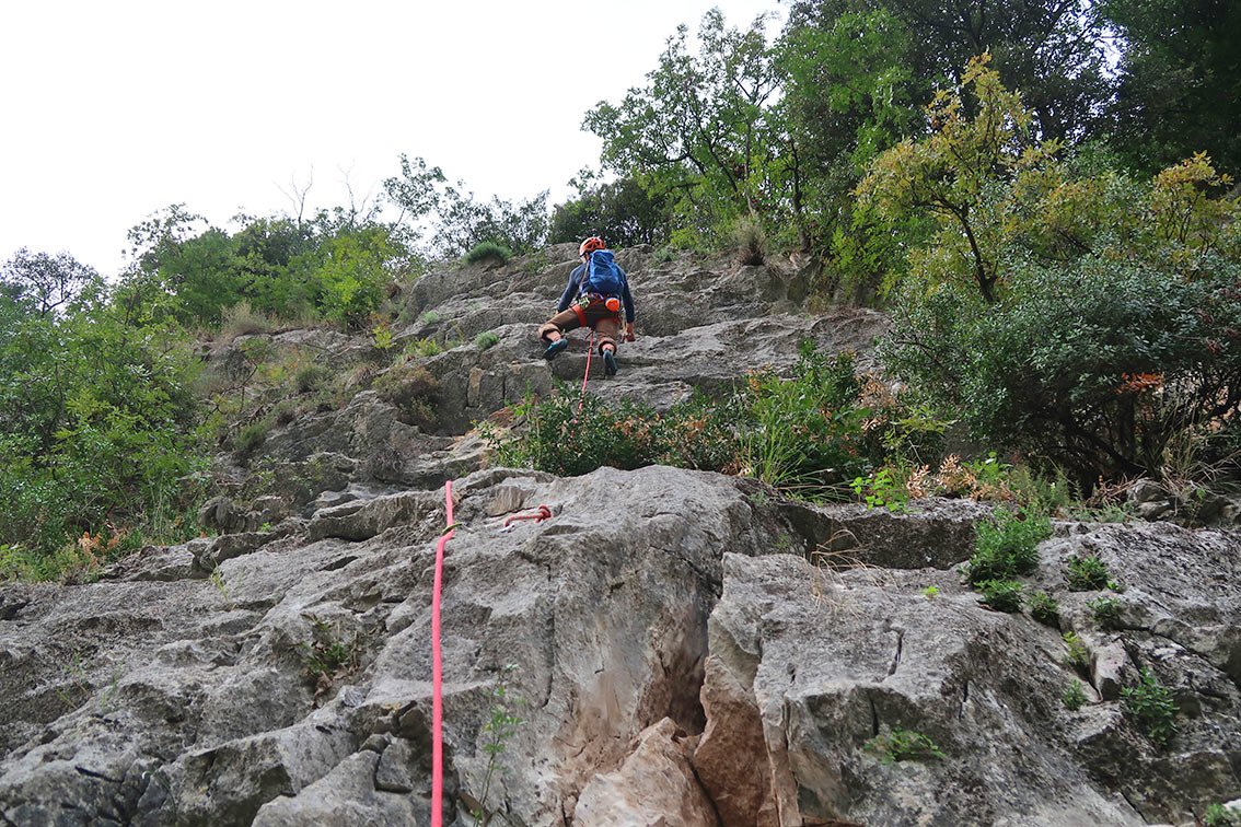 Pungitopo - Weg des stechenden Mäusedorns. Eine etwas gesuchte aber wirklich gut geputzte Genussklettertour im ganz rechten Teil der Parete San Paolo. Die Route ist einen wenig leichter als die daneben verlaufende Via Siuxie. Trotz der fehlenden Bohrhaken ist der Anstieg bei Einsteigern beliebt.