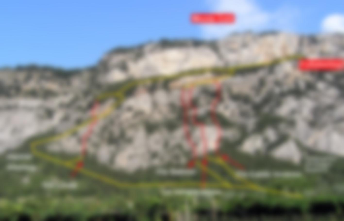 Am Beginn der San-Paolo-Felswände führt ein Steiglein hinauf zum Klettergarten (mit einem markanten Doppelrissdach). Links davon die Wand entlang, die Route ist groß angeschrieben (Schlinge). Die Route verläuft links vom Klettergarten mit dem markanten kleinen Rissdach (siehe Übersichtsbild).