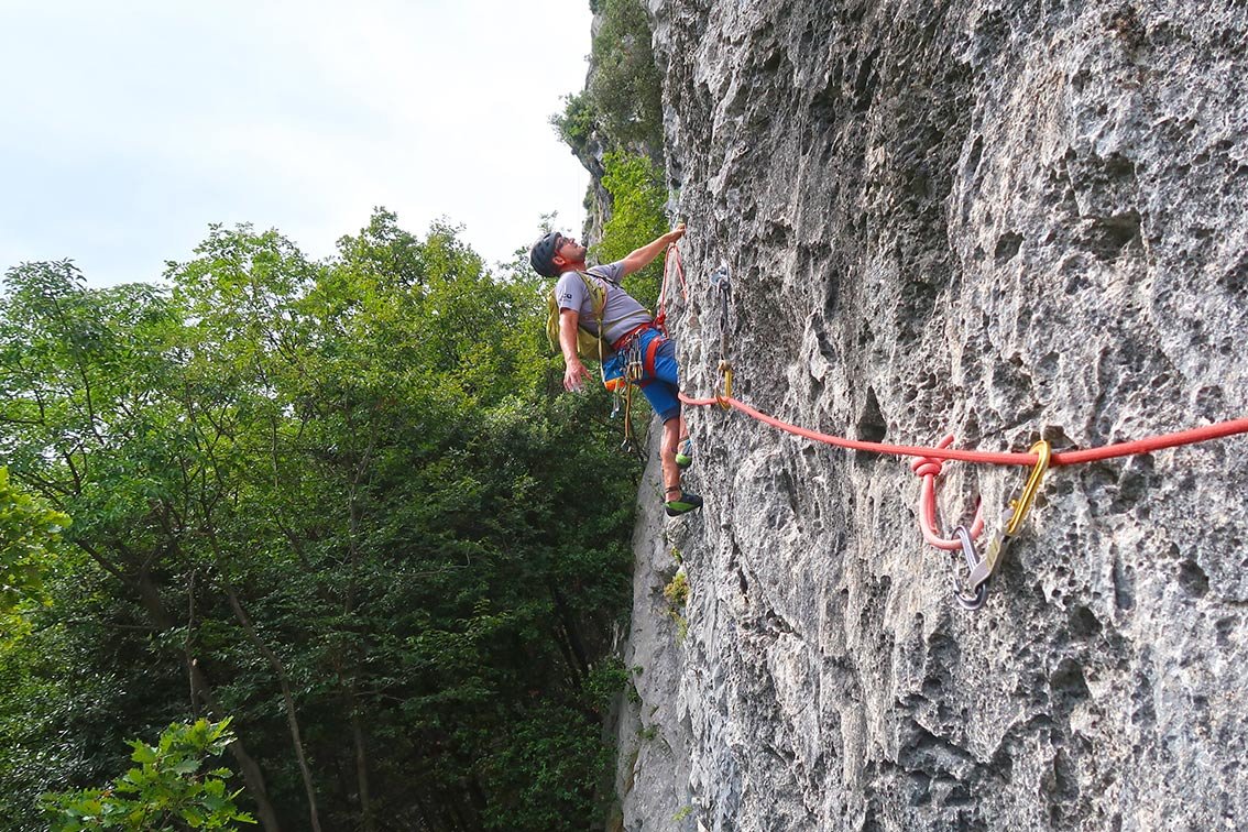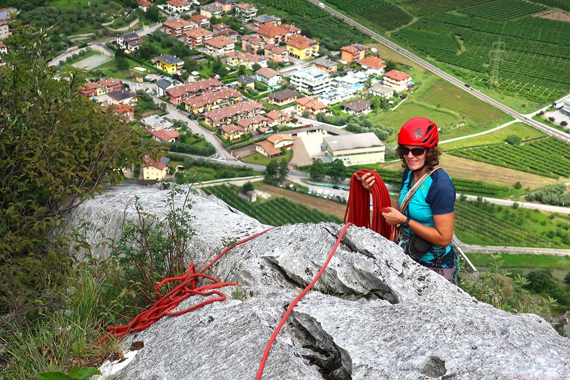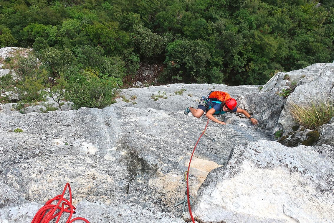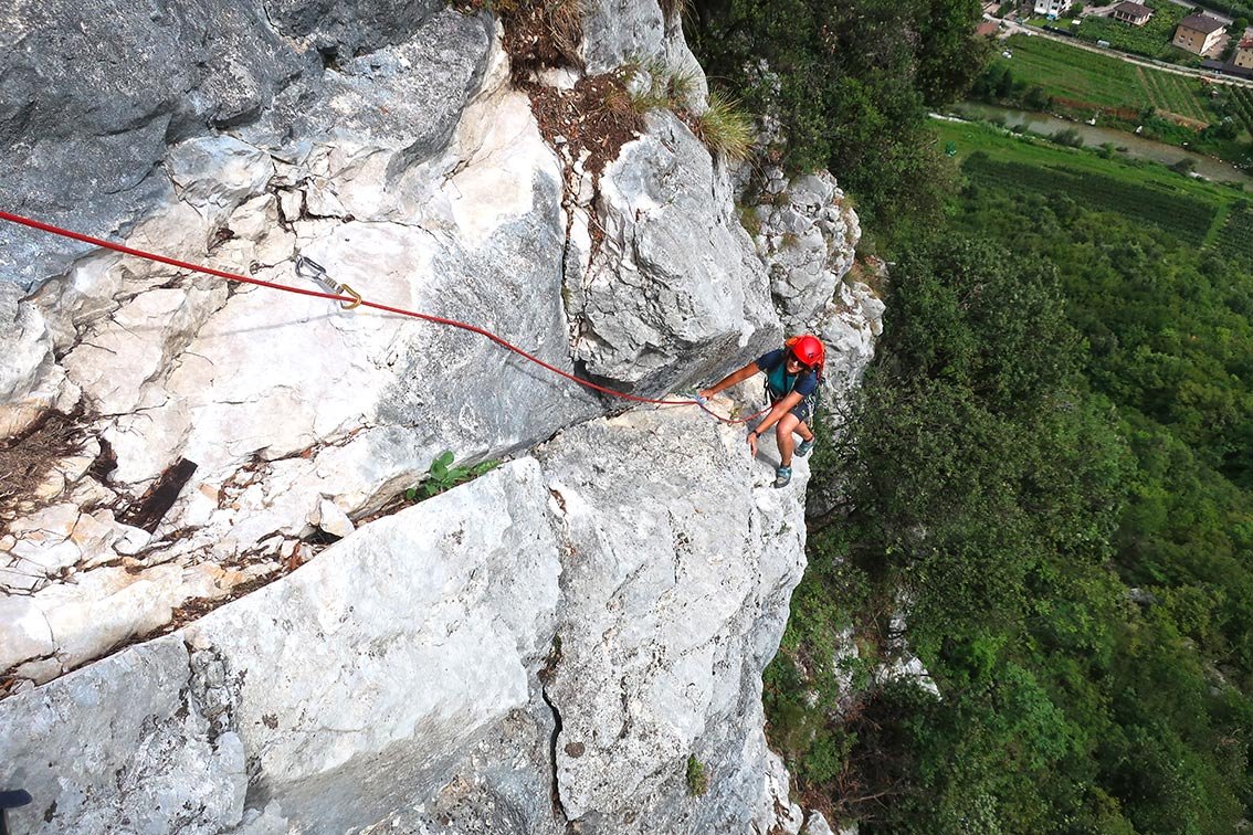 Die Via Sandra ist eine wirklich schöne, aber recht ausdauernde Route an der Ostwand unterhalb des Croce di Ceniga. Fast in jeder Seillänge ist Ausdauerpower gefordert, da mit vielen gebohrten Sanduhren gesichert, packt man instinktiv noch etwas fester zu. Die Route ist aber lohnend, perfekter Fels vom Einstieg bis zum Ausstieg.