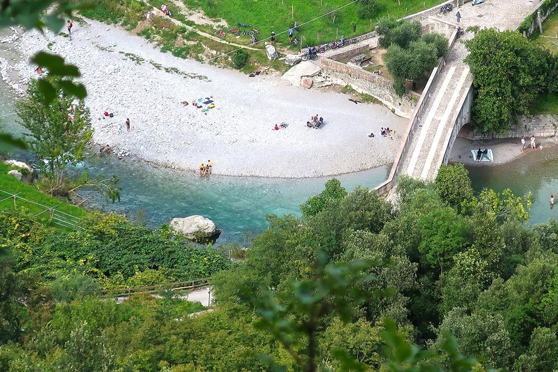 Von Arco vorbei an den Campingplätzen zum Parkplatz im Nahbereich der römischen Brücke bei Ceniga oder von Ceniga zur Brücke und nach dieser links zum Parkplatz. Öffis: Mit dem Bus nach Ceniga und zu Fuß zur römischen Brücke.