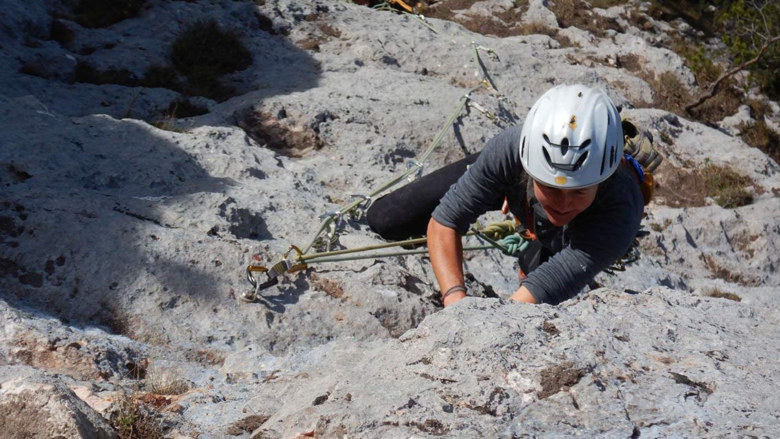 1 x 60 m Einfachseil bzw. 2 x 50 m Halbseil oder Zwillingsseil, 15 Expressschlingen, Kletterausrüstung und Helm.