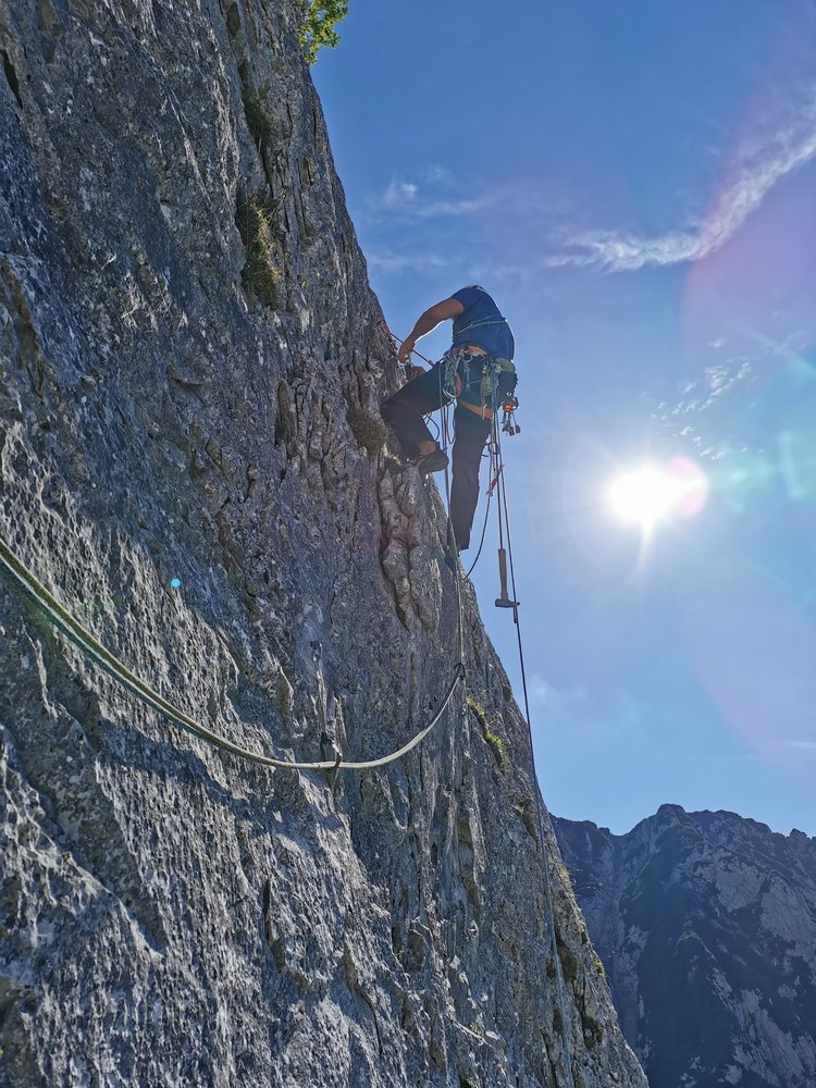 Schöne abwechslungsreiche Wandkletterei mit alpinem Charakter. Optimal mit der Rocko Granato (UIAA 8) zu kombinieren um lohnende 8 SL zu Klettern.