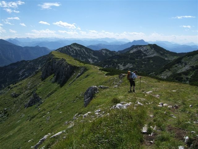 Der Abstieg über den Scheckenberger-Steig ist zwar streckenmässig kürzer aber wegen der z. T. steilen Schrofen ungünstig und kaum schneller.