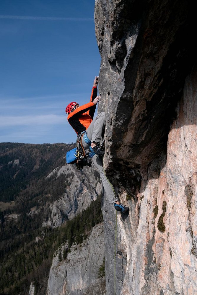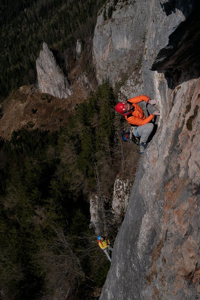 Sehr kompakter, fester Fels, wilde, einsame Umgebung, toller Tiefblick, kühne Kletterei: Viel superlatives wird hier geboten. Aber nur für Könner!