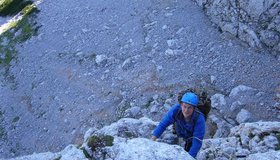Schöne und kurze Kletterei im Nahbereich der Voisthalerhütte (ist in 20 min zu erreichen). Sie gehört zu den beliebtesten Touren im Hüttenbereich. Die Route wurde mit Bohrhaken saniert.