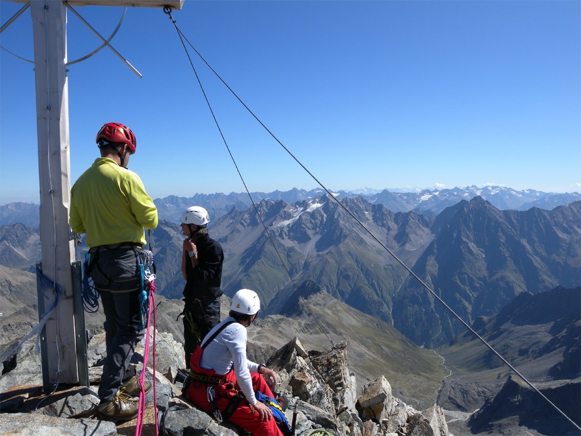 Achtung: Wer keine sehr solide Eiserfahrung hat, sollte wieder über den Ostgrat absteigen. Der Abstieg auf dem sog. Eisweg - also zuerst über den Südgrat und dann der Weiterweg auf dem Plangeross-Ferner - ist wegen zunehmender Ausaperung des Gletschers sehr heikel und gefährlich! Es hat schon Leute gegeben, die an die 8 Stunden für den Abstieg über den Eisweg gebraucht haben.
