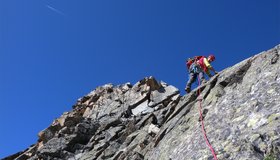Klassische und fantastische Gratkletterei! Der Anstieg ist dank des bohrhakengesicherten dir. Einstieges immer beliebter. Die Kletterei in meist gutem Granit ist nie richtig schwer, einzig eine kurze Wandstelle und der Einstiegspfeiler weisen kurz den 4ten Grad auf. Im oberen Teil anregende Gratkletterei bis zum Gipfel, der ein tolles Panorama zu den Ötztaler Eisriesen bietet.