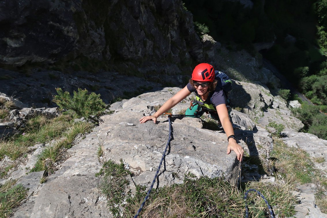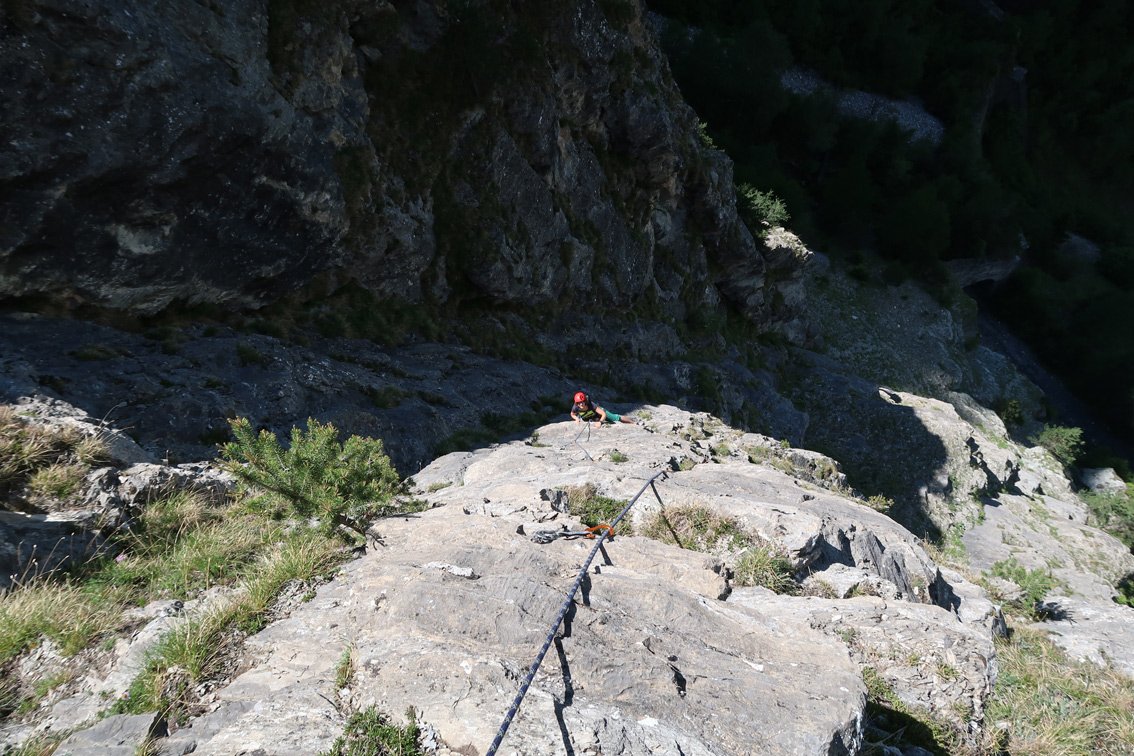 Die Tour ist an sich gut abgesichert - oft sind aber brüchige Passagen zu meistern und im leichten Gelände sind die Abstände etwas weiter.