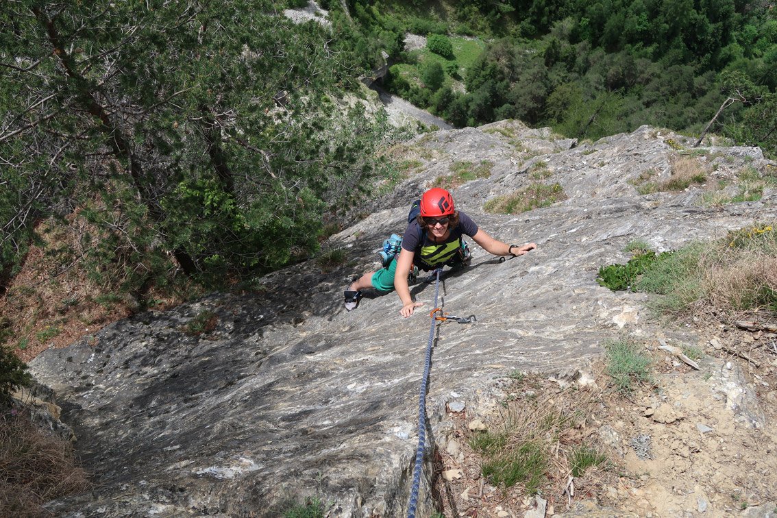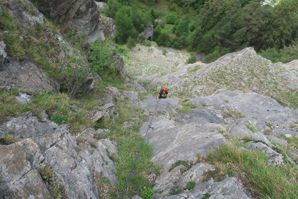 Reine Plaisir-Sportkletterer werden sich in der Route schwer tun - einige brüchige Passagen müssen mit etwas Vorsicht geklettert werden.