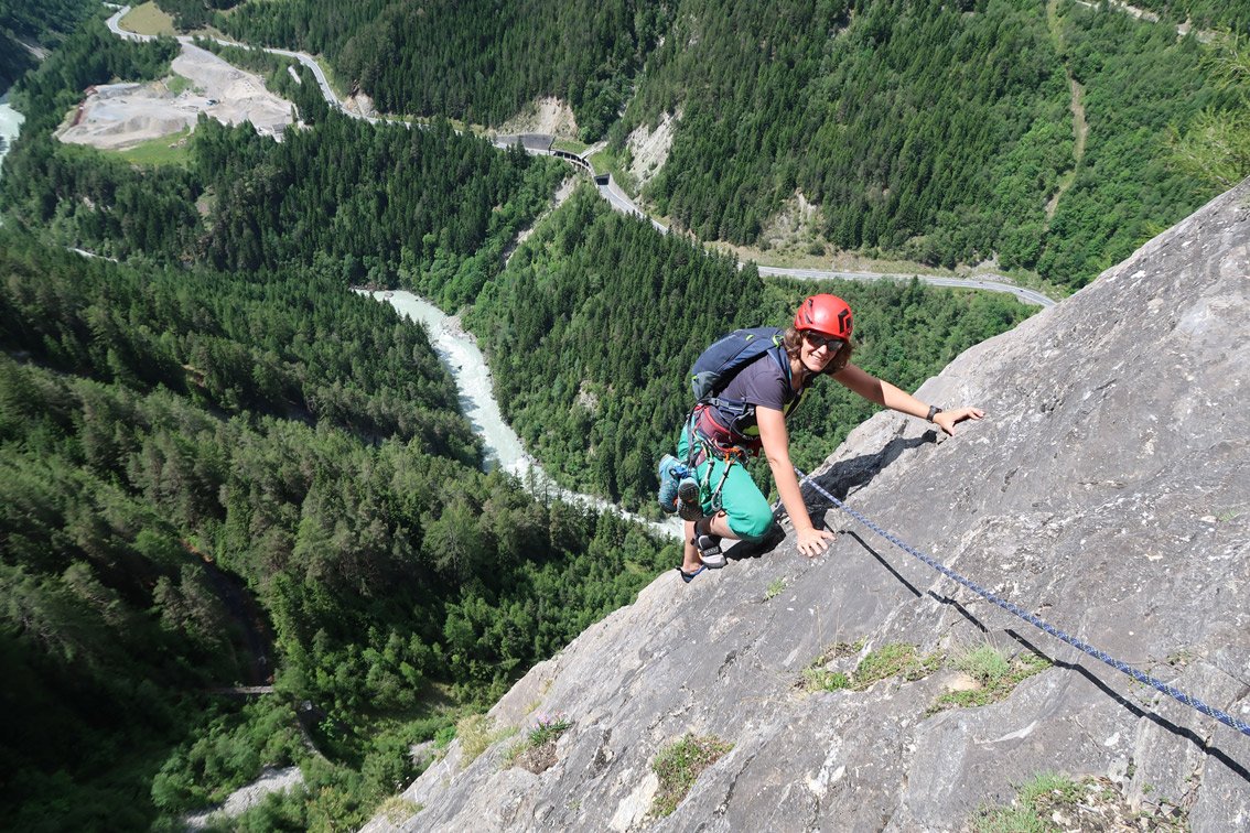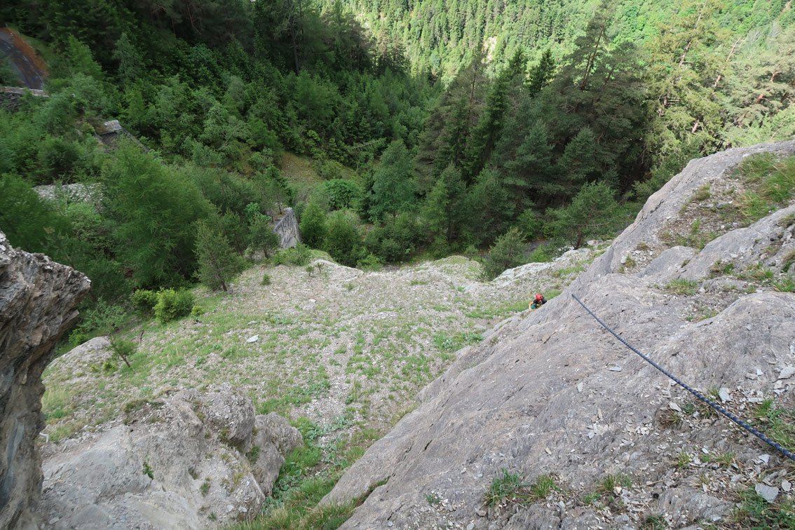Für die Gegebenheiten eine schöne Tour an der Finstermünzwand unweit der alten Festung Nauders. Sowohl der Zustieg als auch die Tour ist ein kleines Abenteuer. Zuerst mit dem Fließverkehr durch den Straßentunnel und dann auf der alten Straße (Steinschlag) bis zum Einstieg. Die Tour selber ist eine Sportklettertour für Alpinisten - einige brüchige Passagen müssen gemeistert werden. Der Blick hinunter ins Inntal ist aber Top!