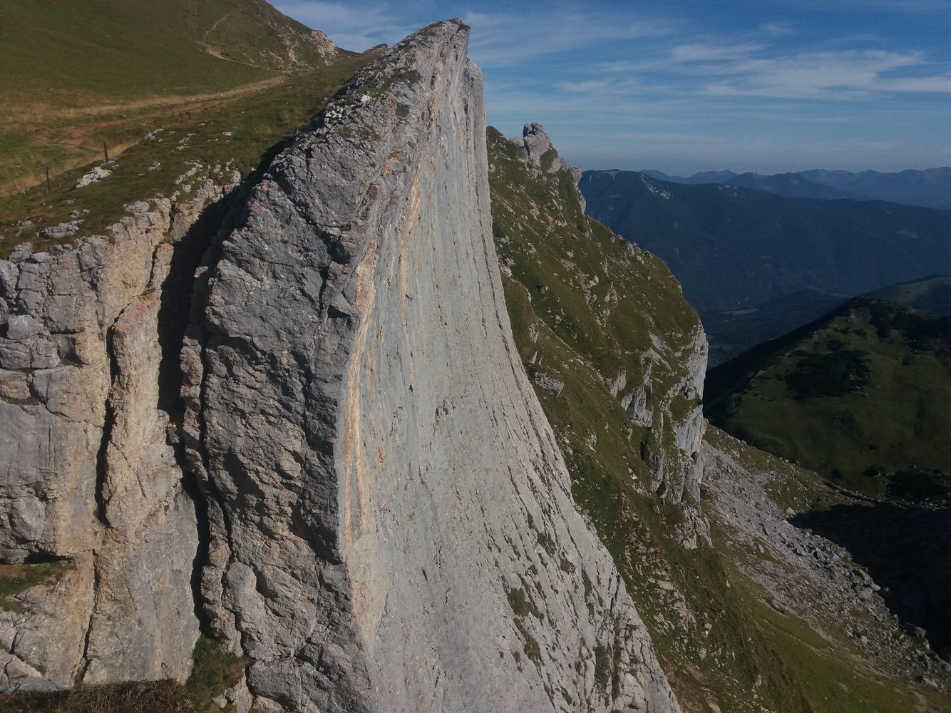 Sollte man der Herausforderung nicht gewachsen sein, d.h die Wand nicht durchsteigen, bedeutet dies Rückzug zum Einstieg. Anschließend rechts (nach Osten) weglos und steil in Richtung Schafsteig ausqueren. (Achtung Wegfindung!)