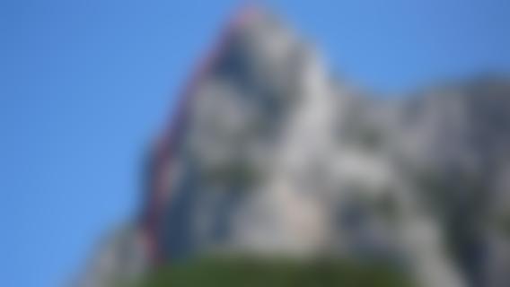 Kletterroute in nicht immer ganz festem Fels. Der vierte