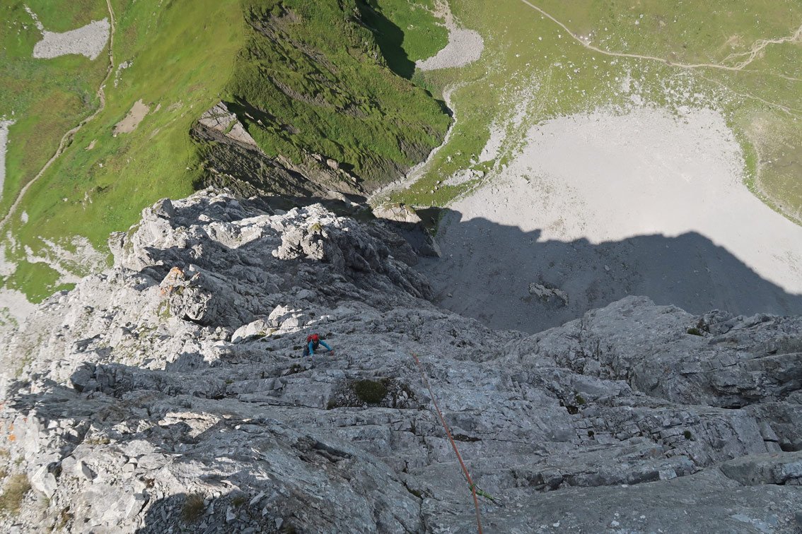 Beim Zustieg auf jeden Fall zum Beginn des Wiesengrates gehen - wenn man vorher reinquert, löst man teilweise Steine aus, die direkt auf den Wanderweg fallen. Der Zustieg über den kompletten Wiesengrat ist nur unwesentlich länger und deutlich angenehmer.