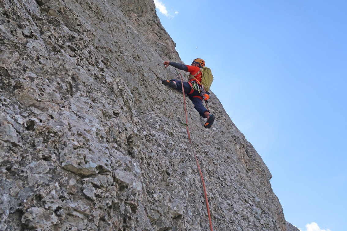 Bei Nässe nicht zu empfehlen. Auch sollte der Vorsteiger den 5ten Grad sehr solide klettern.