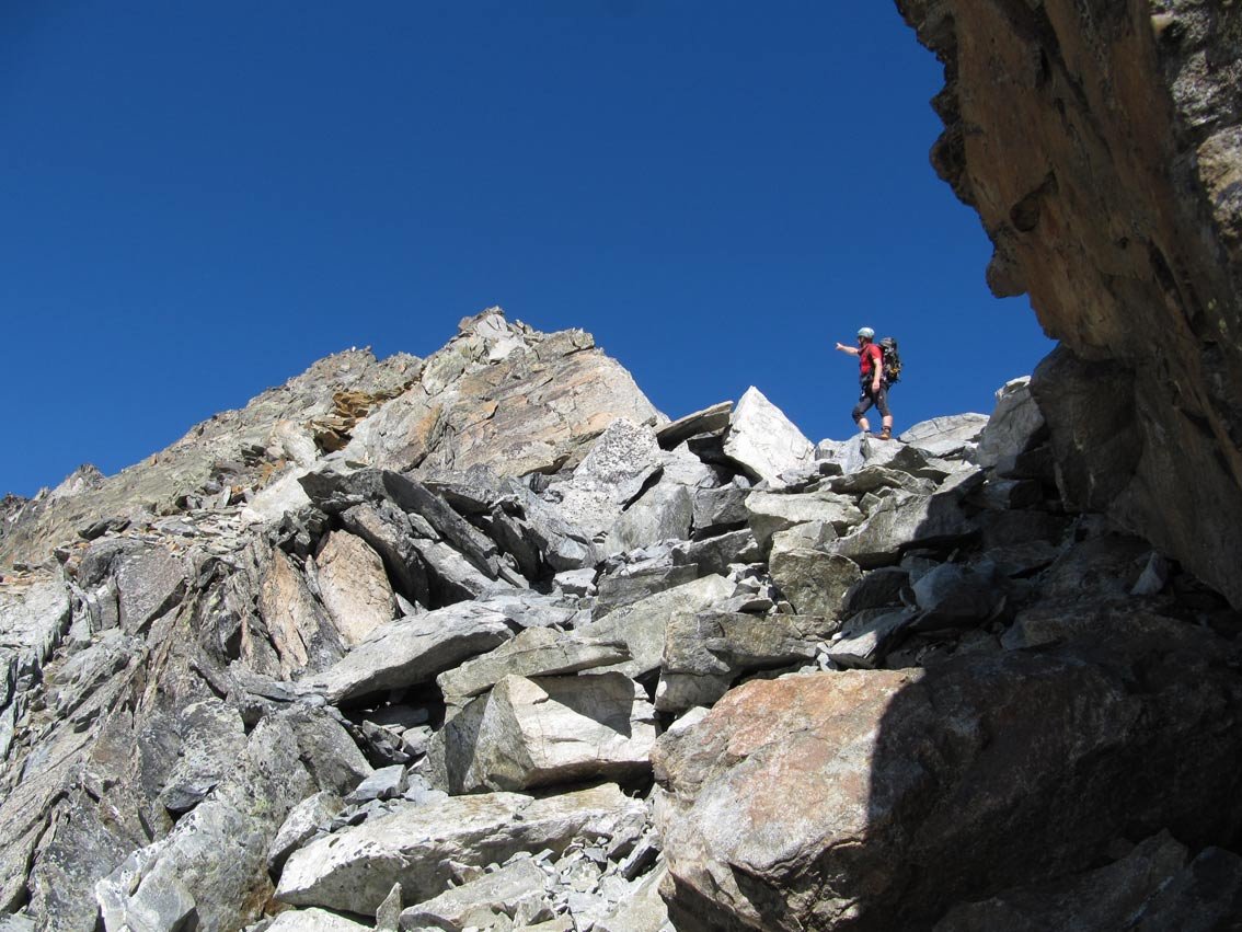 Man kann den Zu- und Abstieg ohne Gletscherberührung im Schutt gehen, ist aber tlw. mühsamer als mit den Steigeisen auf dem Eis.