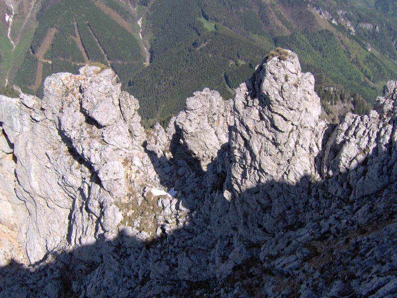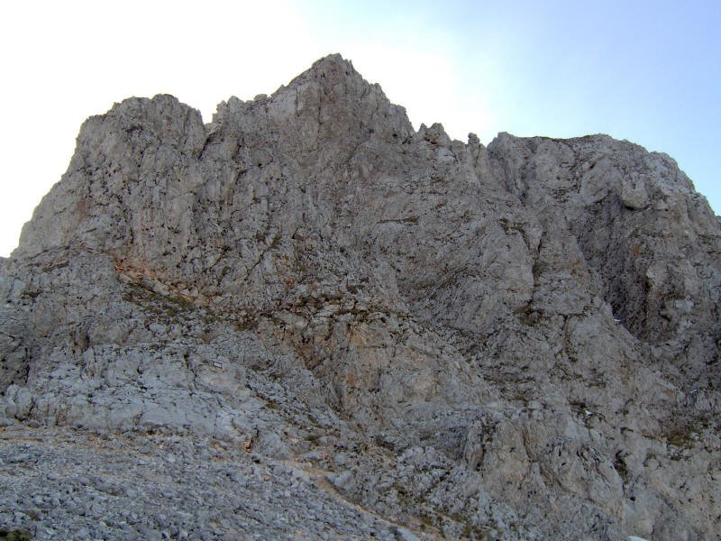 Am besten über den Gamsecksteig, (B) ein netter Klettersteig, der ca. 350 m rechts vom Einstieg beginnt. (Tafel und Markierung).